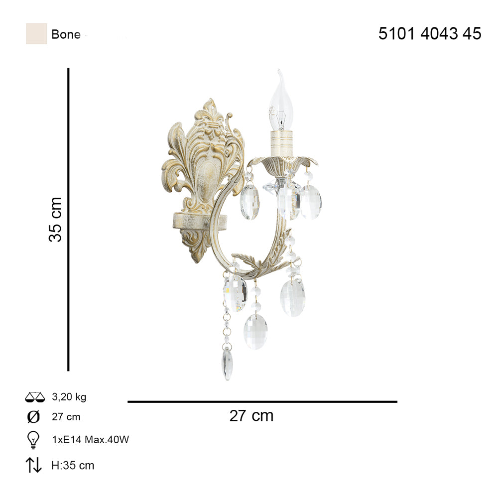 Aplica Cristal HubRom, HAVUZLU 5101-4043-45 27x27xHmax35 cm 1xE14-40W Crem Patina Auriu