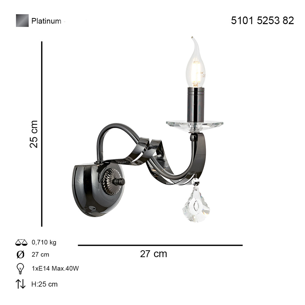 Aplica Cristal HubRom, KARLEN 5101-5253-82 27x25 cm 1xE14-40W Fume