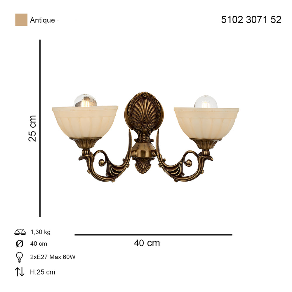 Aplica HubRom, MASS 5102-3071-52 40x40xHmax25 cm 2xE27-60W Antiq
