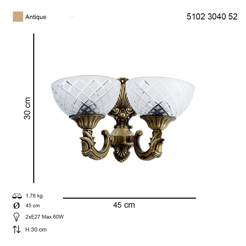 Aplica HubRom, YENI LOST 5102-3040-52 40x40xHmax25 cm 2xE27-60W Antiq