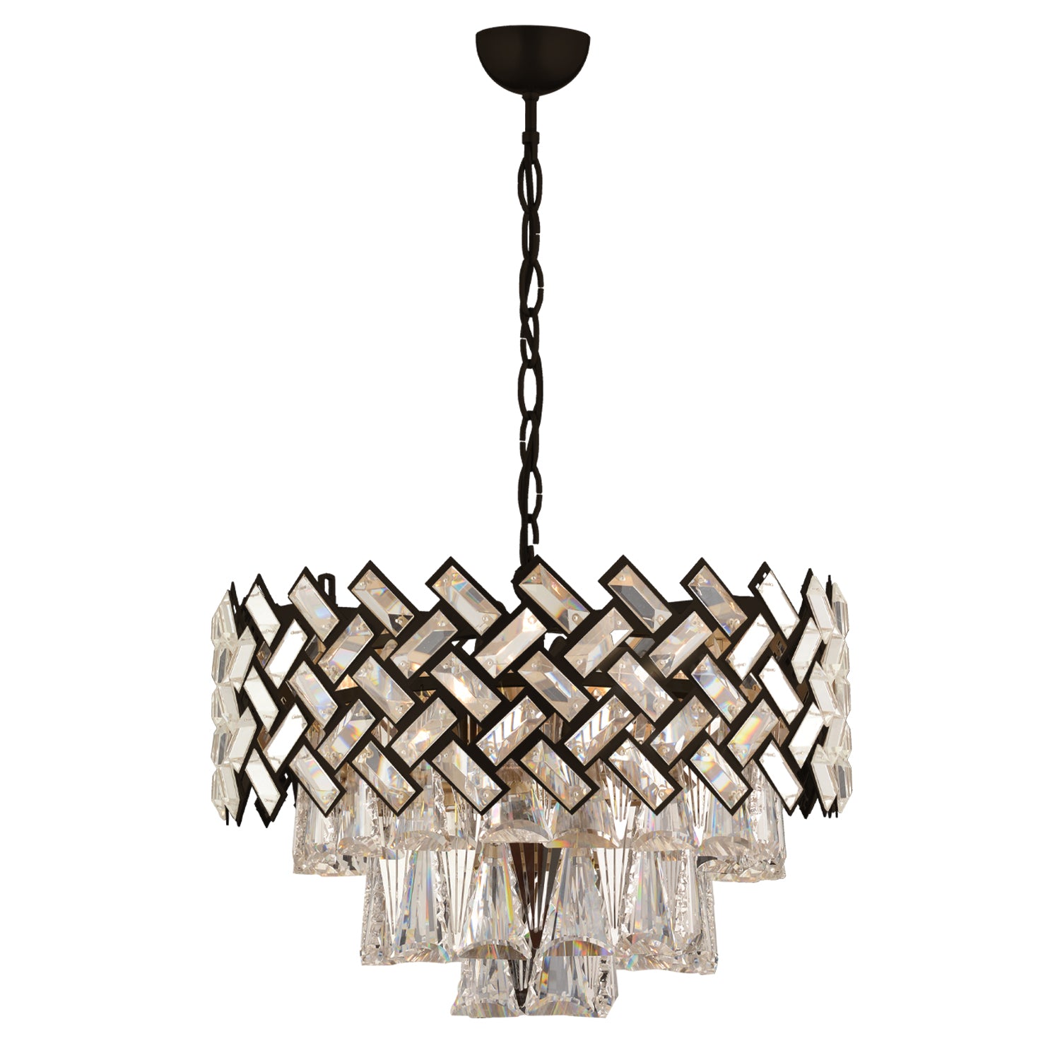Candelabrul Melina Negru este o piesă decorativă elegantă, cu cristale transparente din sticlă și structură metalică robustă. Designul reglabil îl face potrivit pentru încăperi de diverse înălțimi, aducând un plus de rafinament sufrageriilor, sălilor de mese sau holurilor generoase.