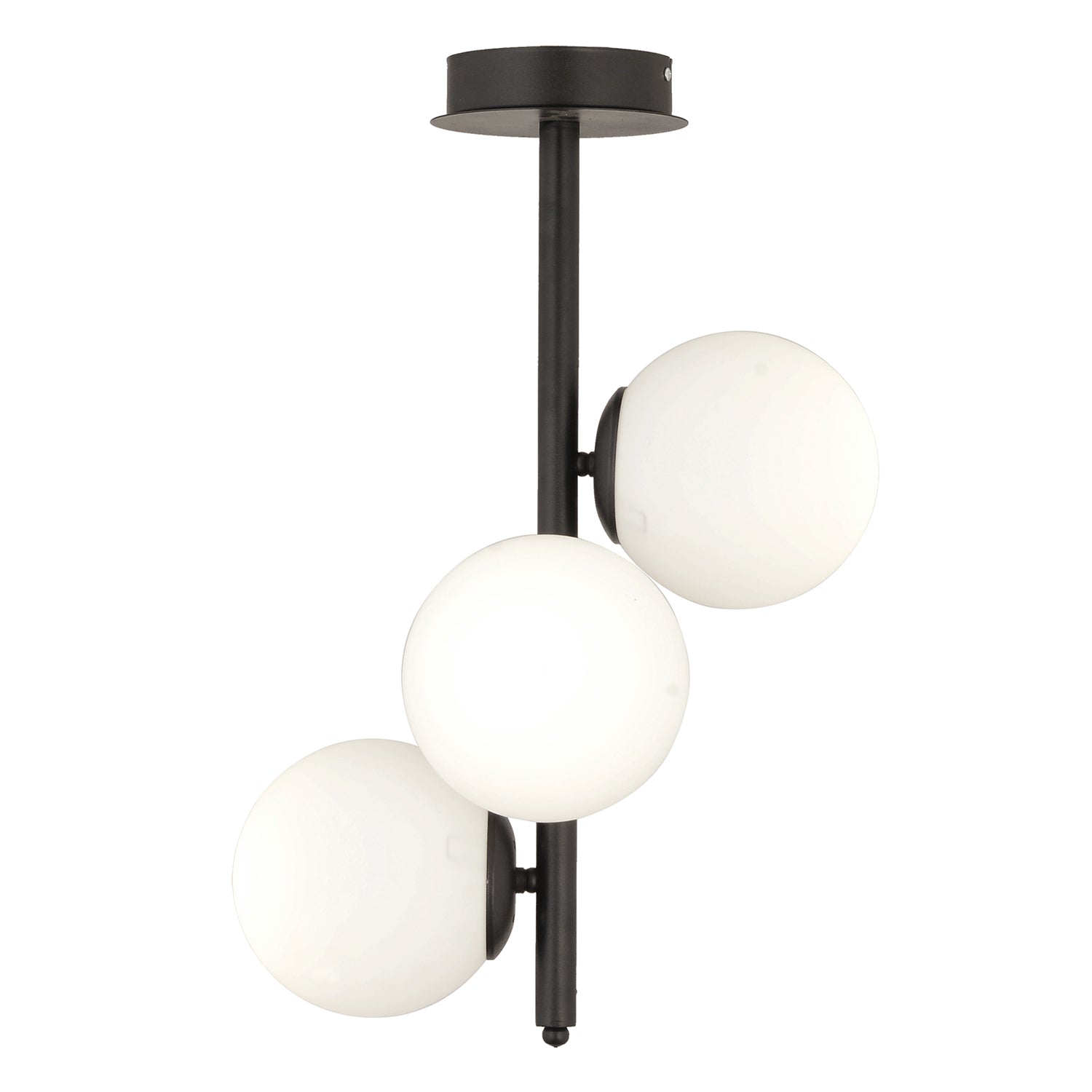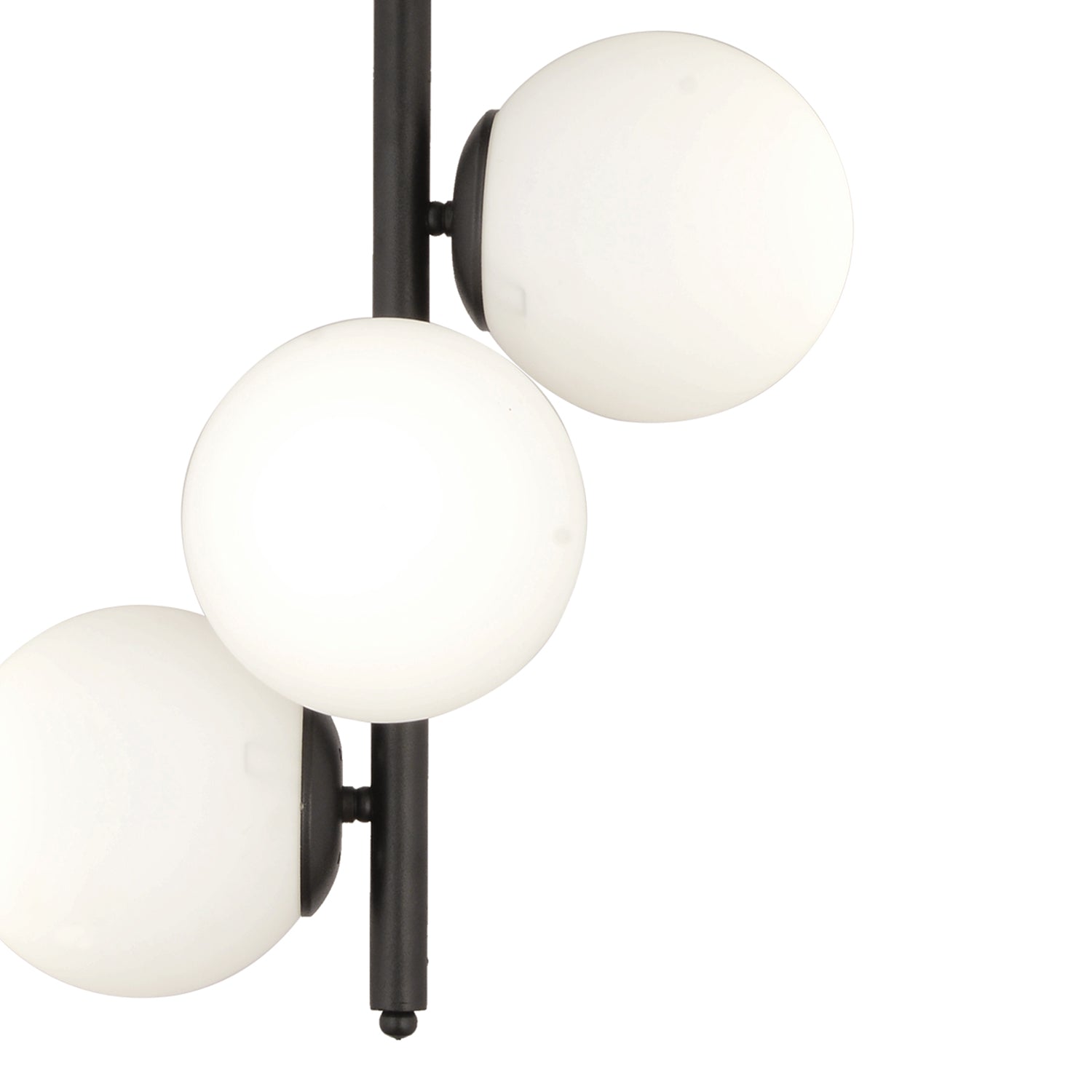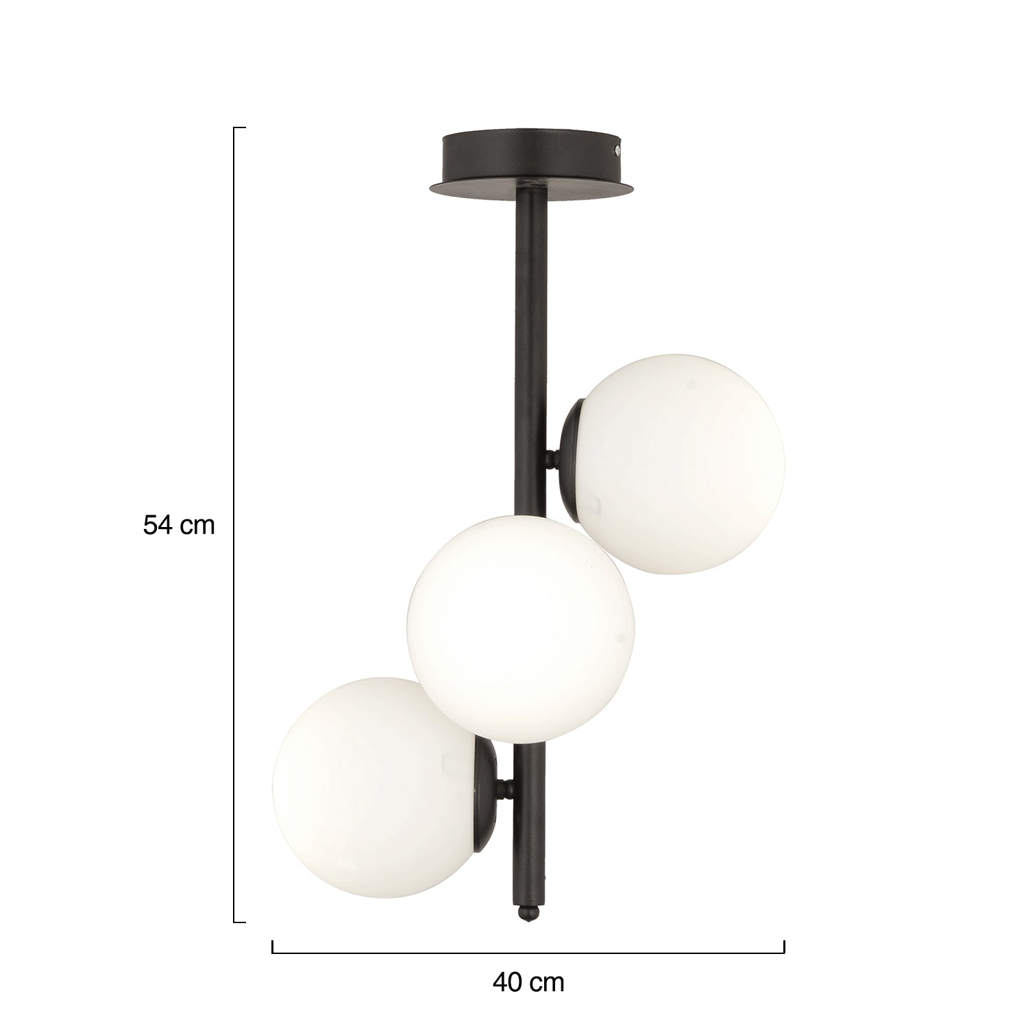 Candelabrul UZEL cu 3 becuri oferă un echilibru perfect între stilul modern și eleganța clasică. Finisajul negru și globurile din sticlă albă creează un contrast rafinat, ideal pentru sufragerii, dormitoare sau holuri.