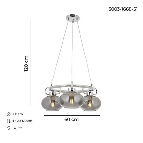 Lustra HubRom, LONDON 5003-1668-51 60x60xHmax120 cm 3xE27-60W Crom