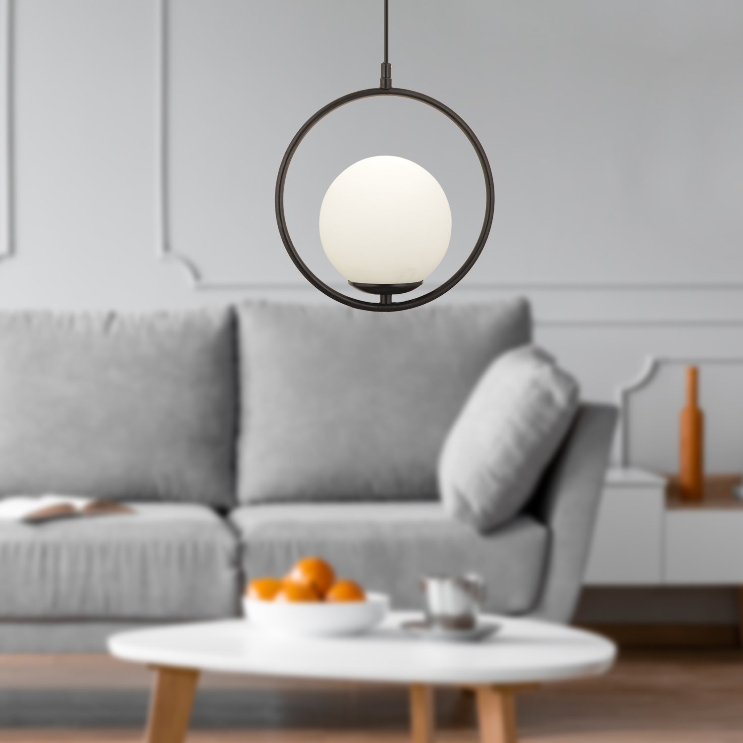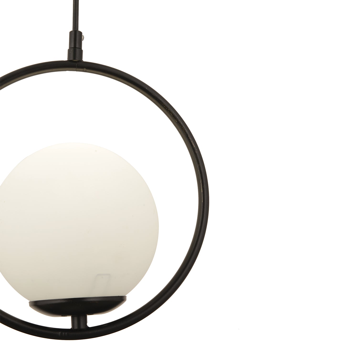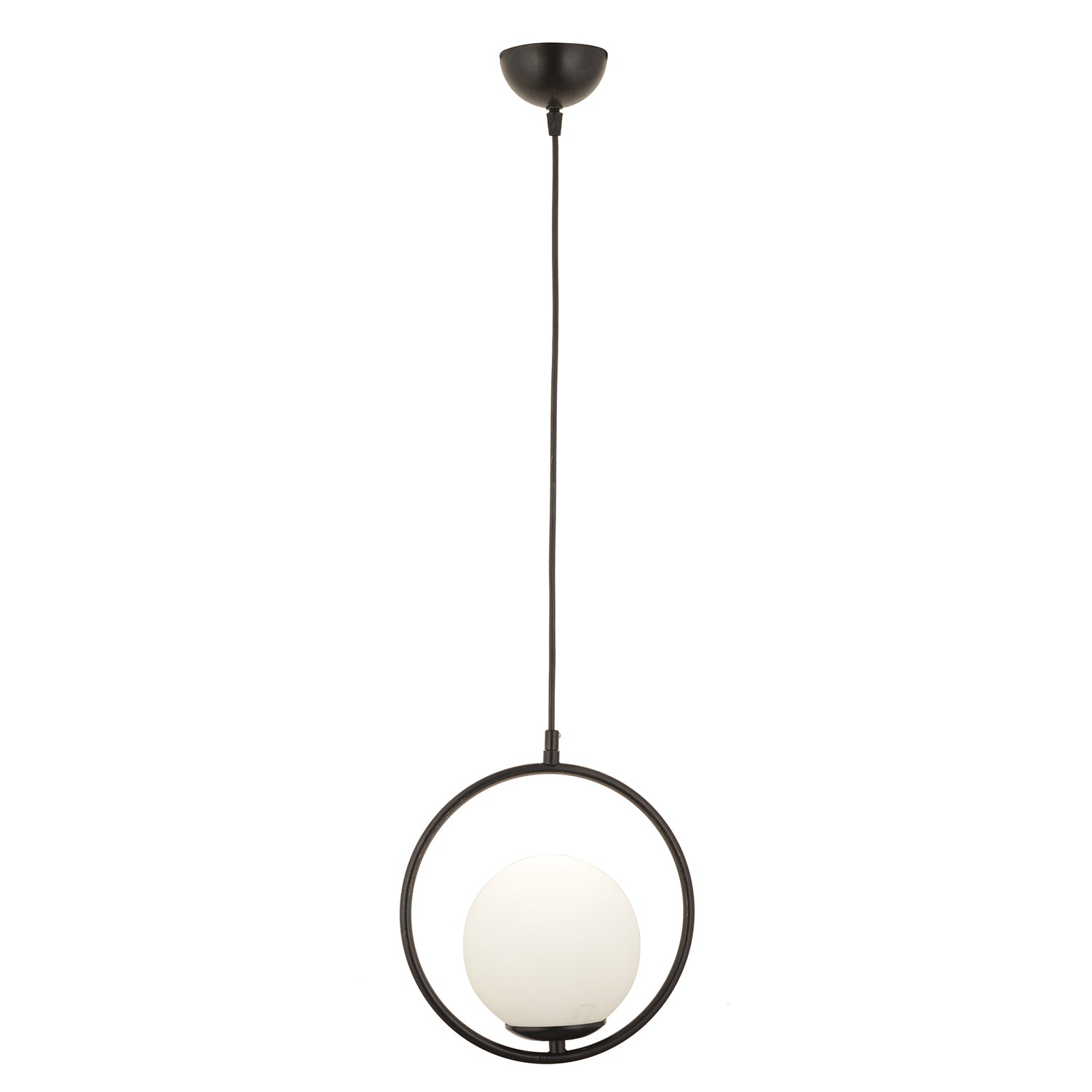 Lustra suspendată LUIS Black adaugă un accent modern și elegant spațiilor dvs. de locuit. Cu un glob alb de sticlă cu diametru de 15 cm și cablu reglabil până la 80 cm, acest model este ideal pentru camere de zi, coridoare, cafenele și spații comerciale.