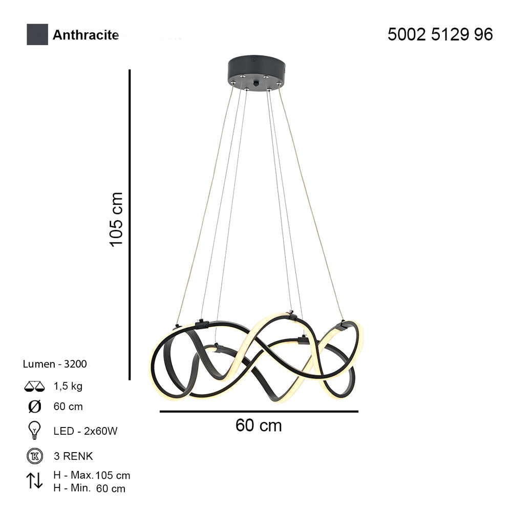 Lustra Led HubRom, BURGAZ Antracit 5002-5129-96 60x60xHmax105 cm 60 W / 3200L Lumina Calda,Rece,Neutra