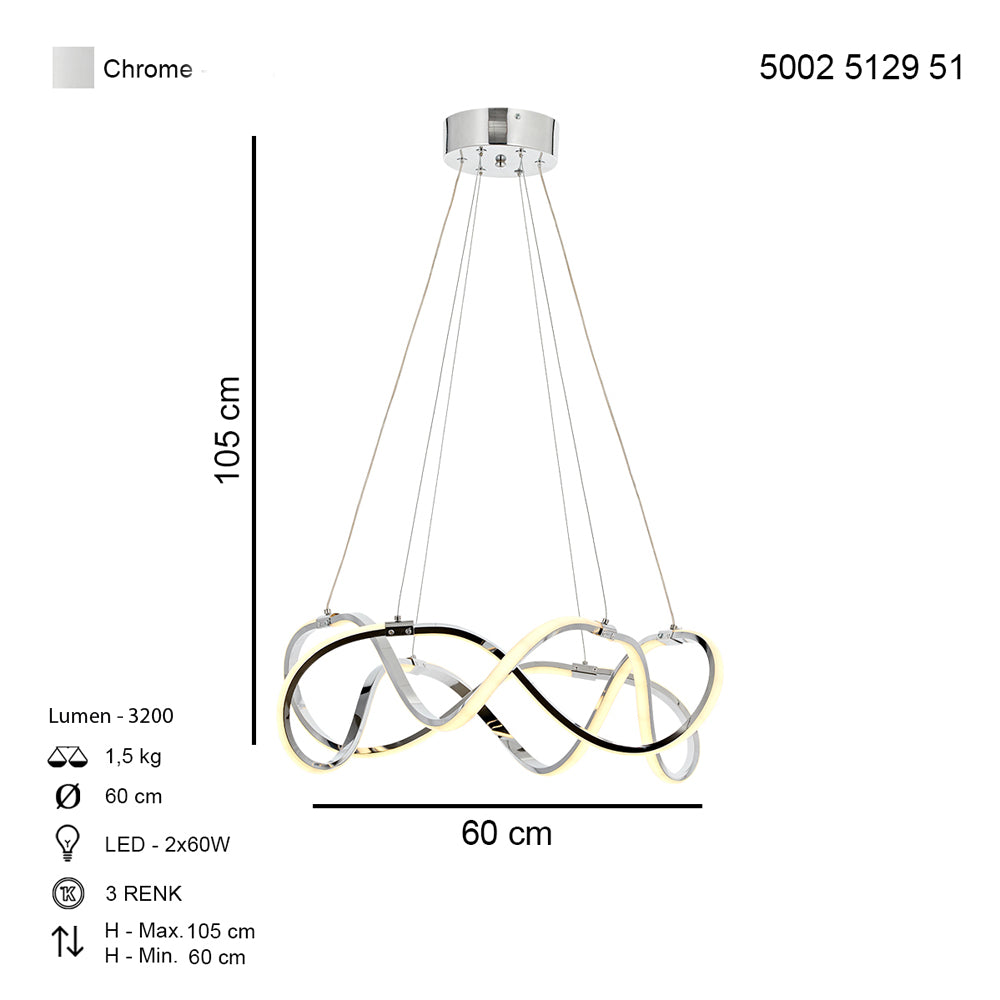 Lustra Led HubRom, BURGAZ Crom 5002-5129-51 60x60xHmax105 cm 60 W / 3200L Lumina Calda,Rece,Neutra