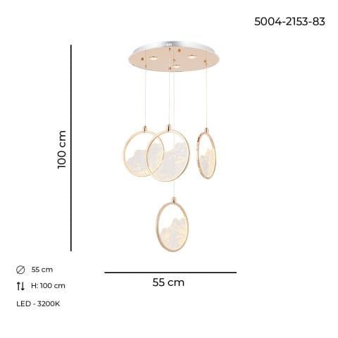 Lustra Led HubRom, GEYIK Auriu 5004-2153-83 50x50xHmax200 cm 3200 K Lumina Neutra