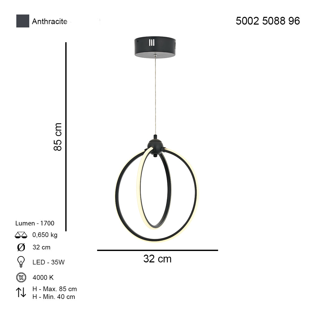 Lustra Led HubRom, PLEVNE Antracit 5002-5088-96 32x32xHmax85 cm 35 W / 1700L/4000K Lumina Neutra