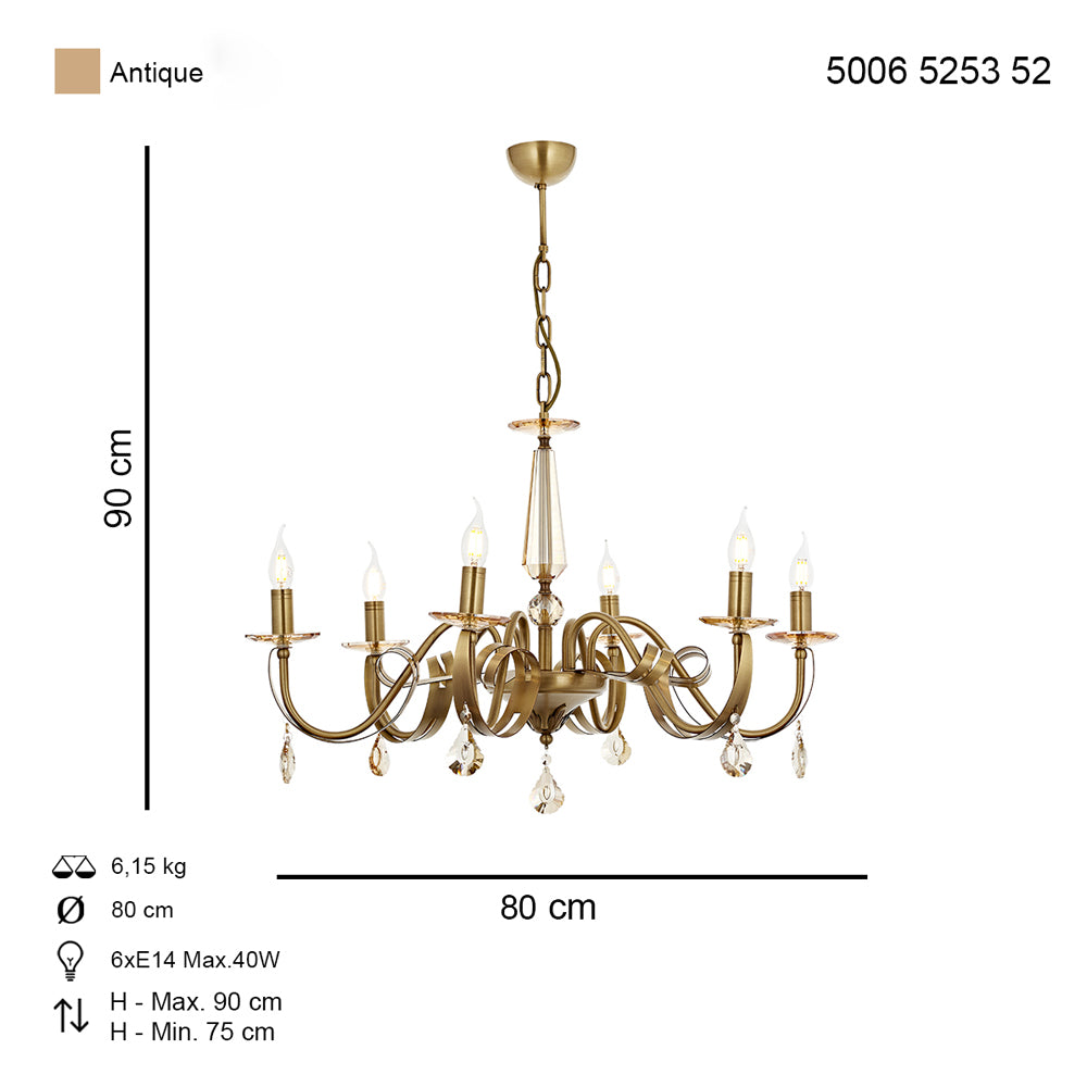Lustra Cristal HubRom, KARLEN 5006-5253-52 55xHmax40-80 cm 6xE14-40W Antiq