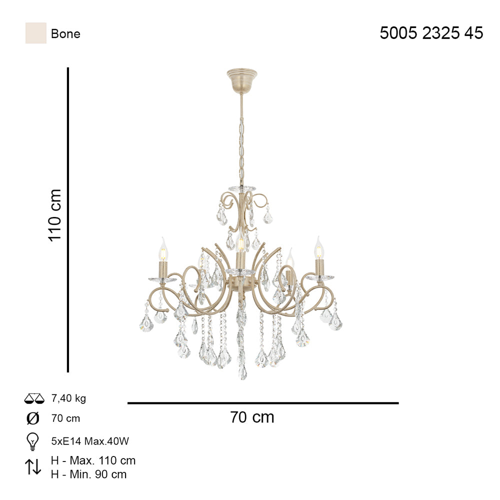 Lustra Cristal HubRom, LILYA 5005-2325-45 70xHmax90-100 cm 5xE14-40W Crem Patina Auriu