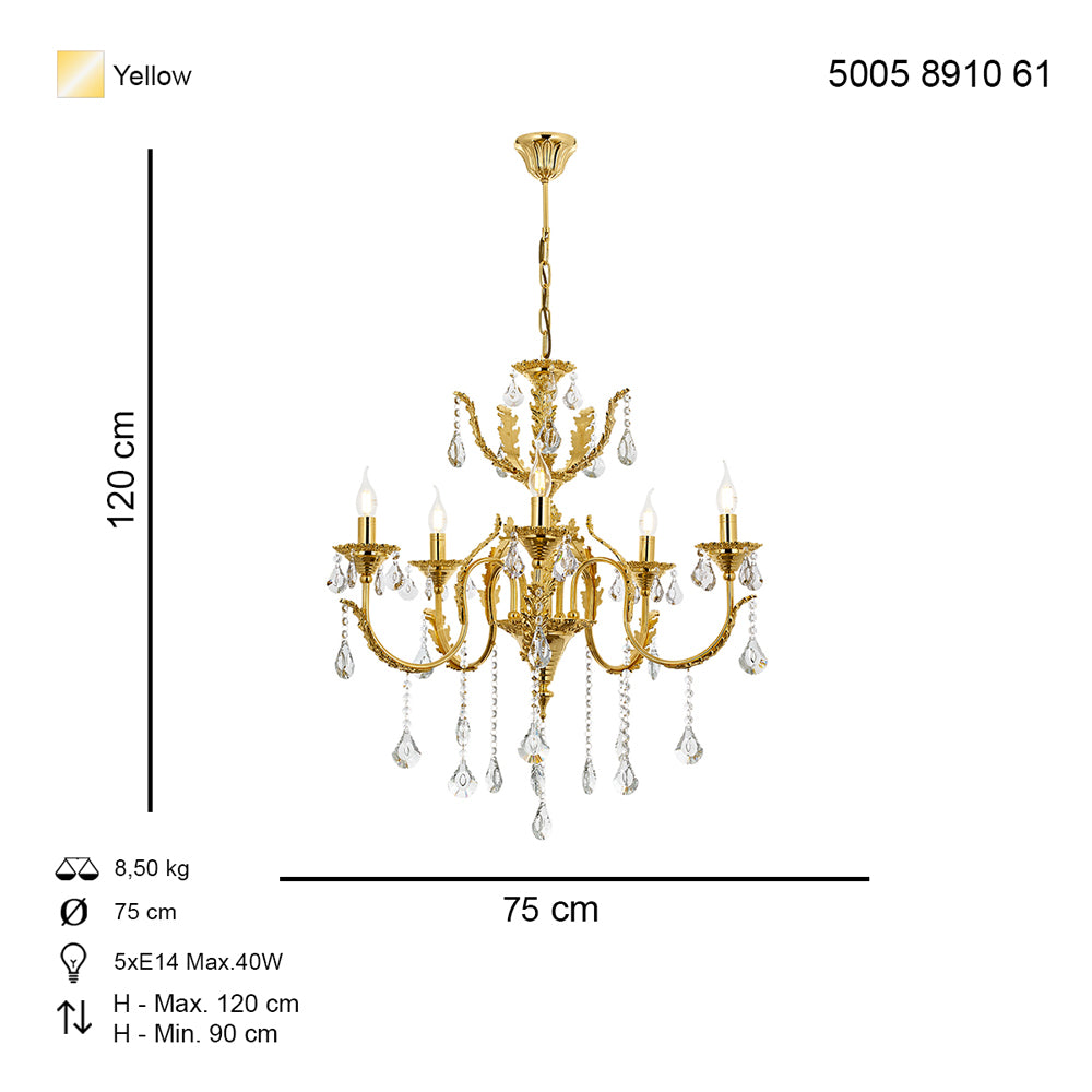 Lustra HubRom, ERNESTO 5005-8910-61 75x75xHmax120 cm 5xE14-40W Auriu