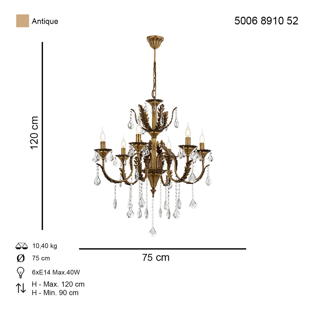 Lustra HubRom, ERNESTO 5006-8910-52 75x75xHmax120 cm 6xE14-40W Antiq