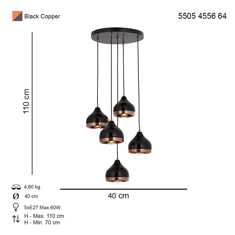 Lustra HubRom, DELIGHT 5505-4556-64 40x40xHmax110 cm 5xE27-60W Negru/Cupru