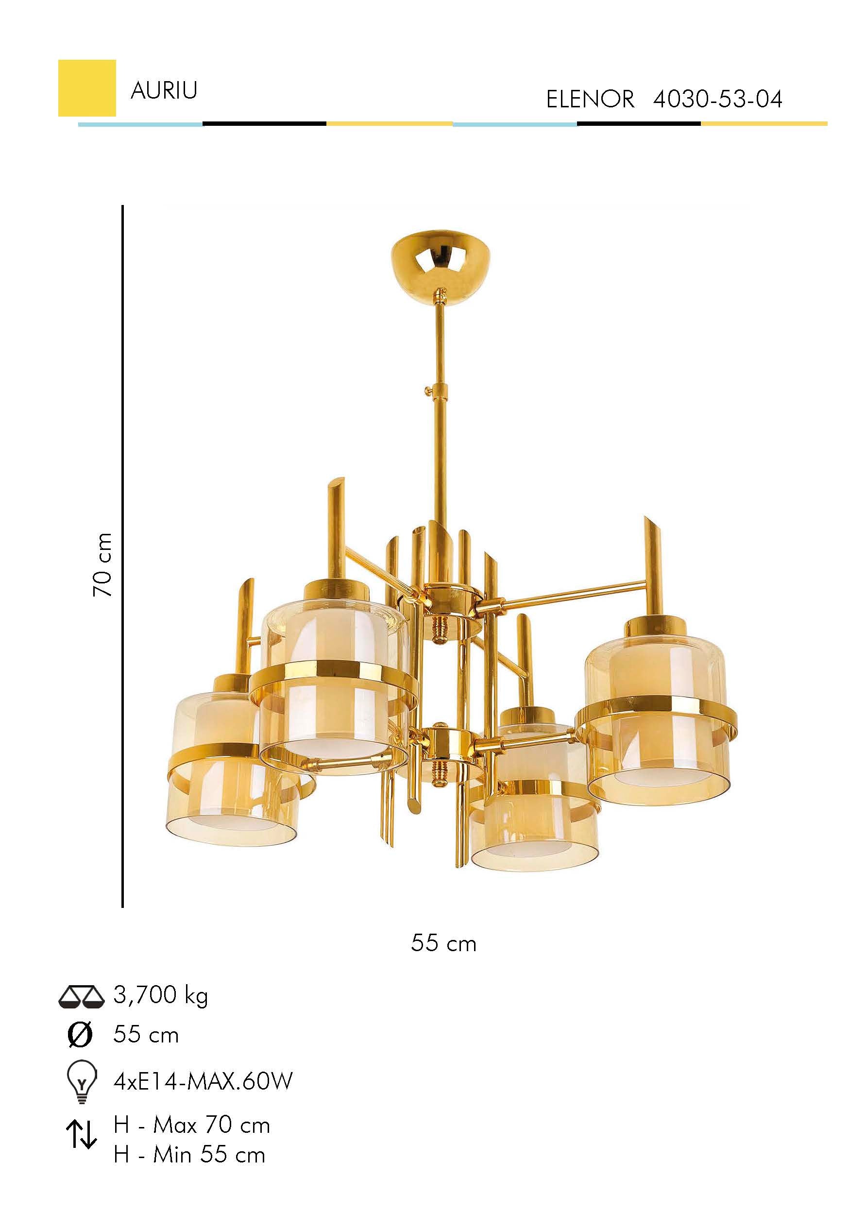 Lustra HubRom, ELENOR 4030-53-04 55x55xHmax70 cm 4xE27-60W Auriu