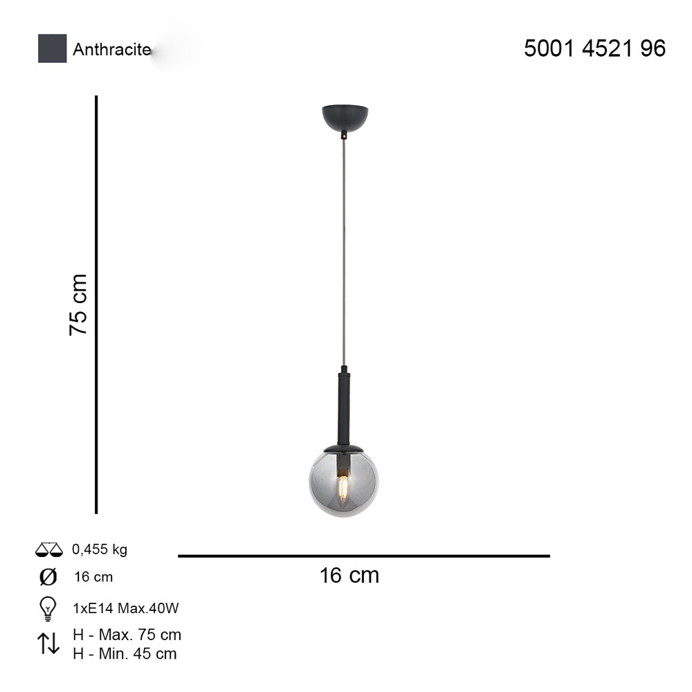 Lustra HubRom, HELYUM 5001-4521-96 16x16xHmax75 cm 1xE14-40W Antracit