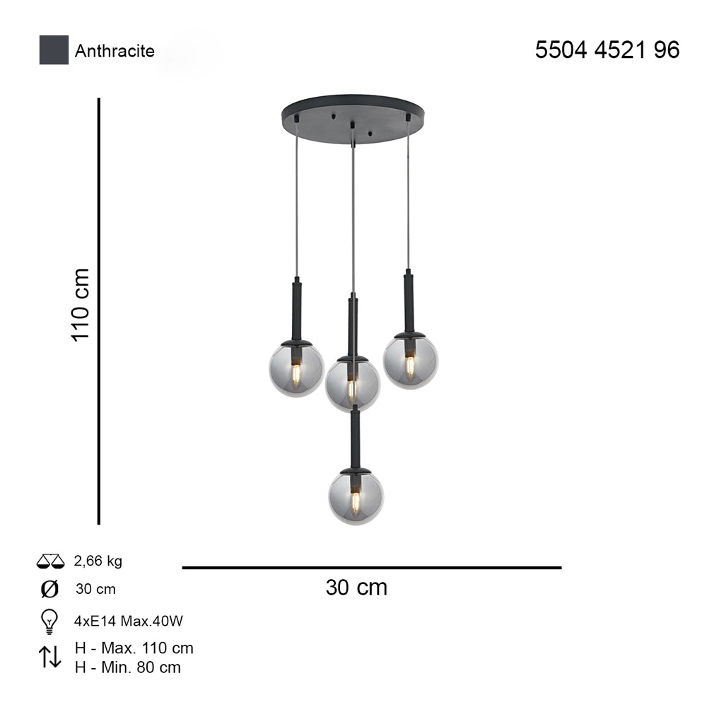 Lustra HubRom, HELYUM 5504-4521-96 30x30xHmax110 cm 4xE14-40W Antracit