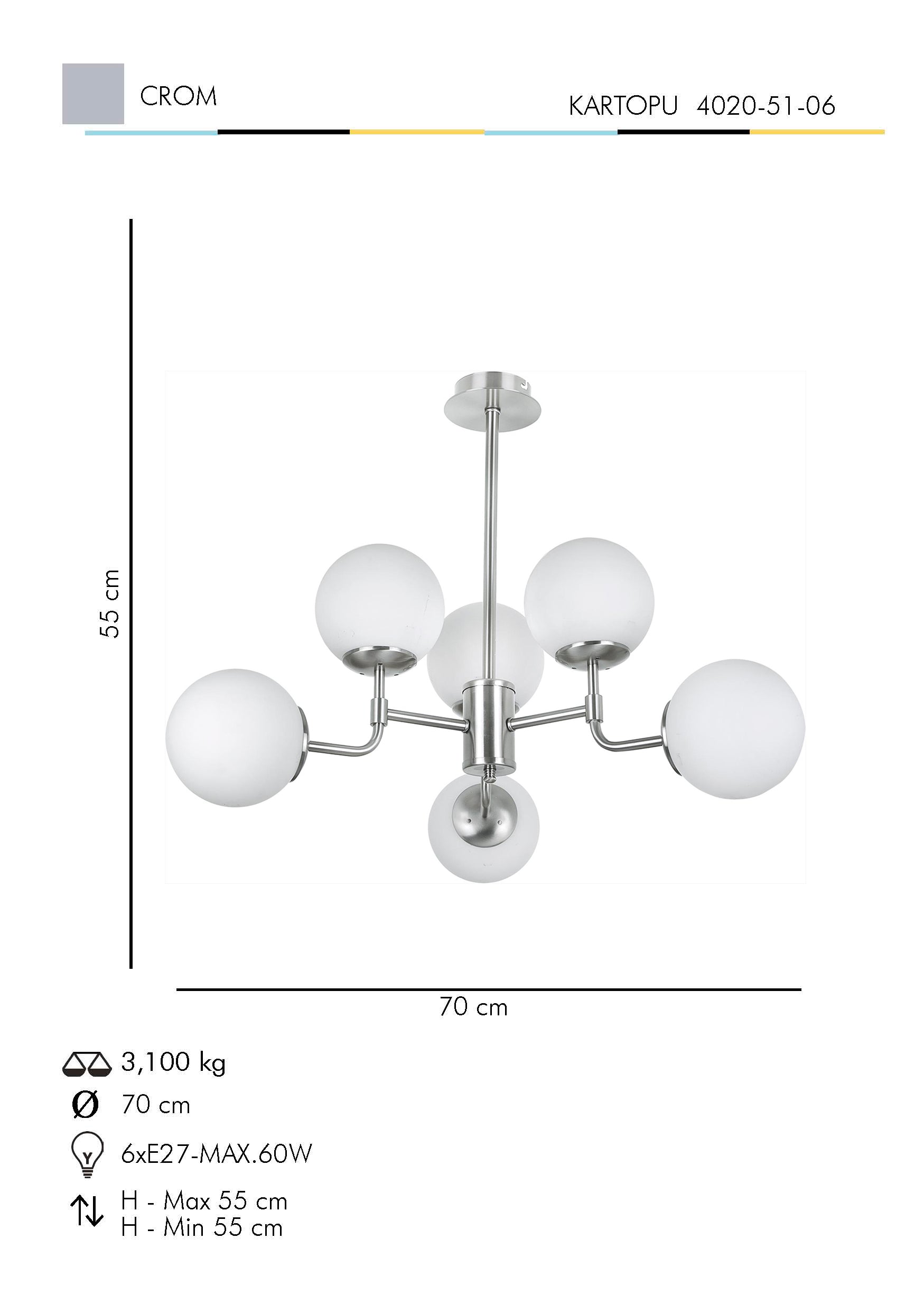 Lustra HubRom, KARTOPU 4020-51-06 55x55xHmax70 cm 6xE27-60W Crom