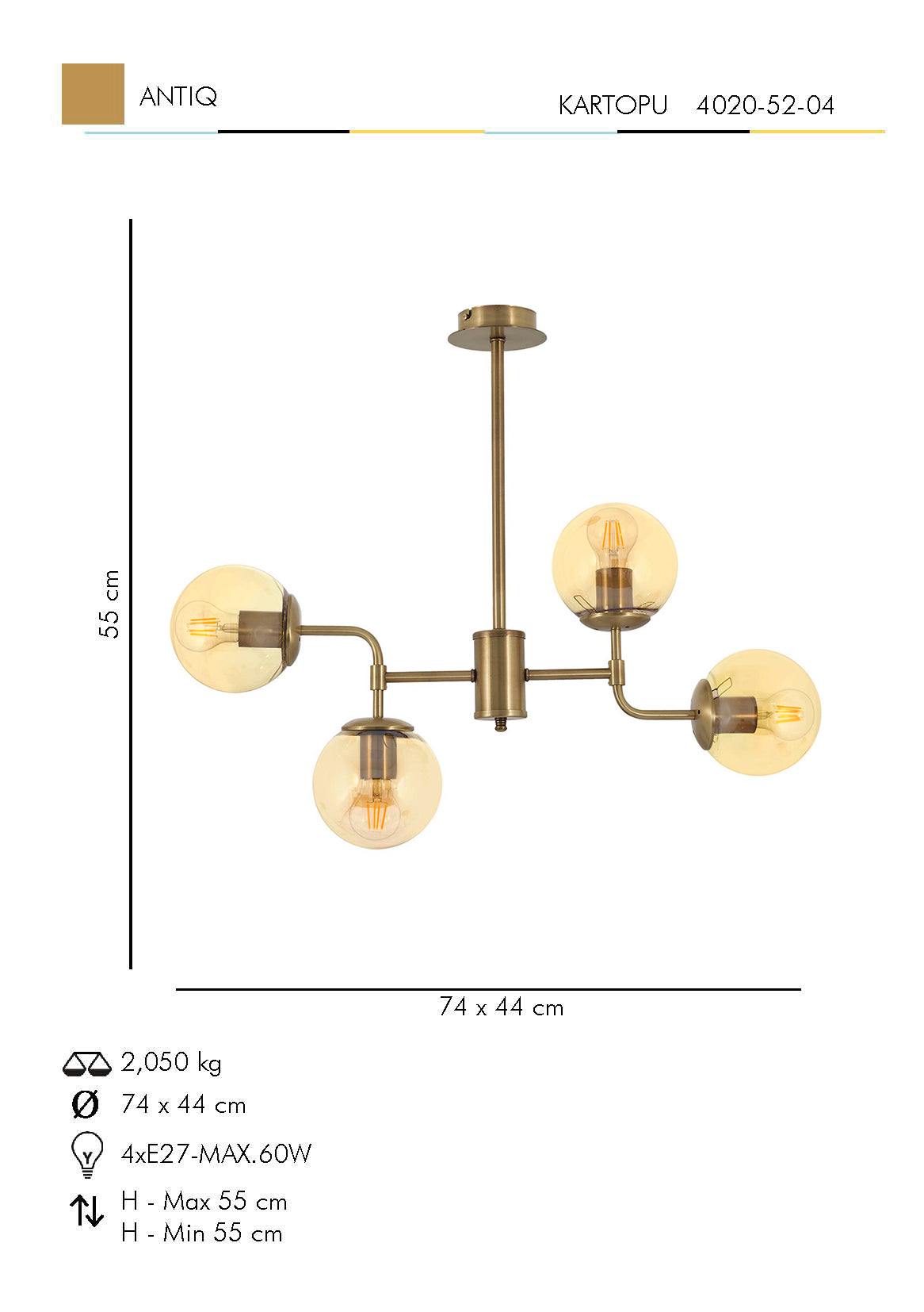 Lustra HubRom, KARTOPU 4020-52-04 55x74x44xHmax55 cm 4xE27-60W Antiq