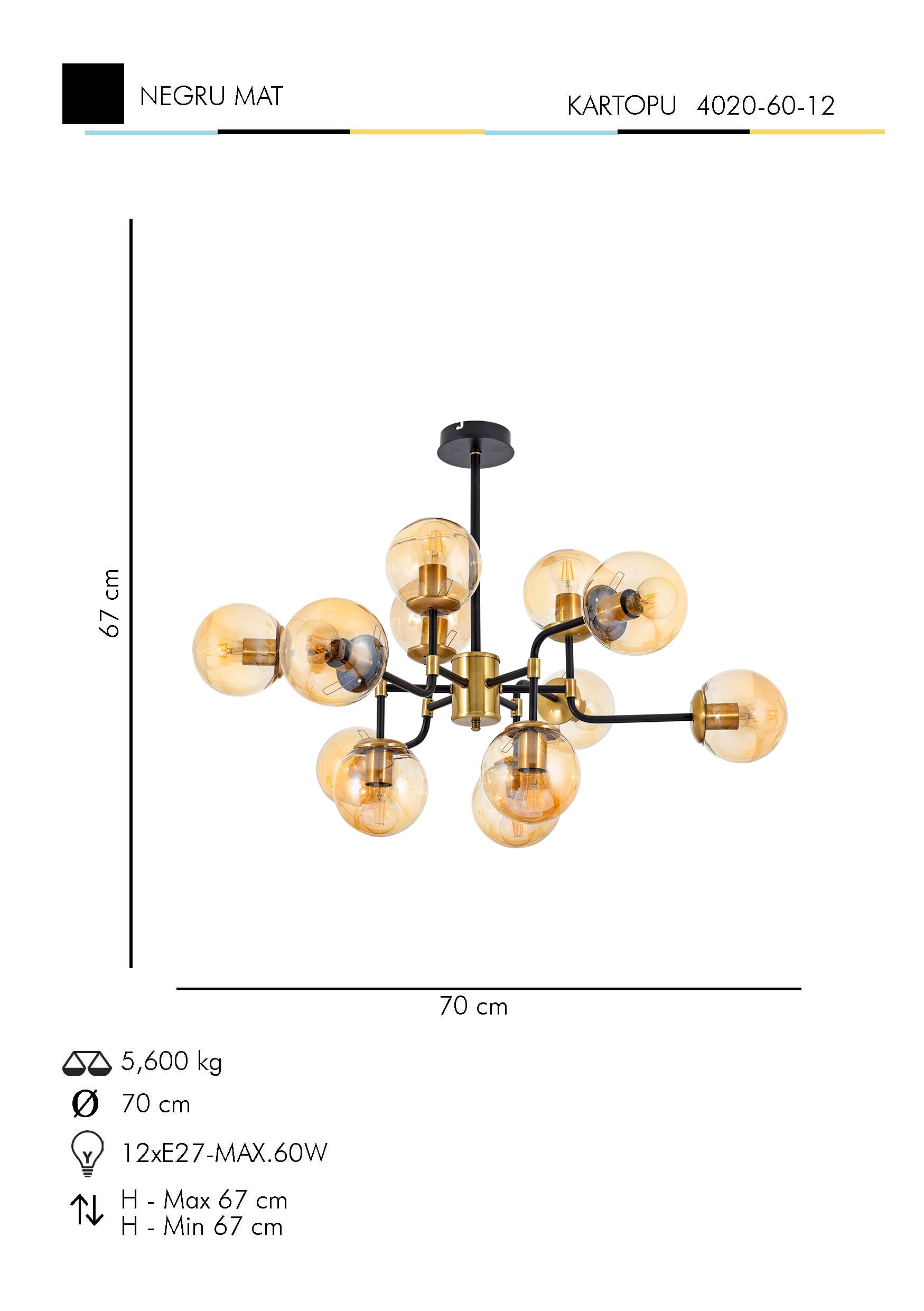 • Lustra HubRom, KARTOPU 4020-60-12 67x67xHmax70 cm 12xE27-60W Negru / Antiq