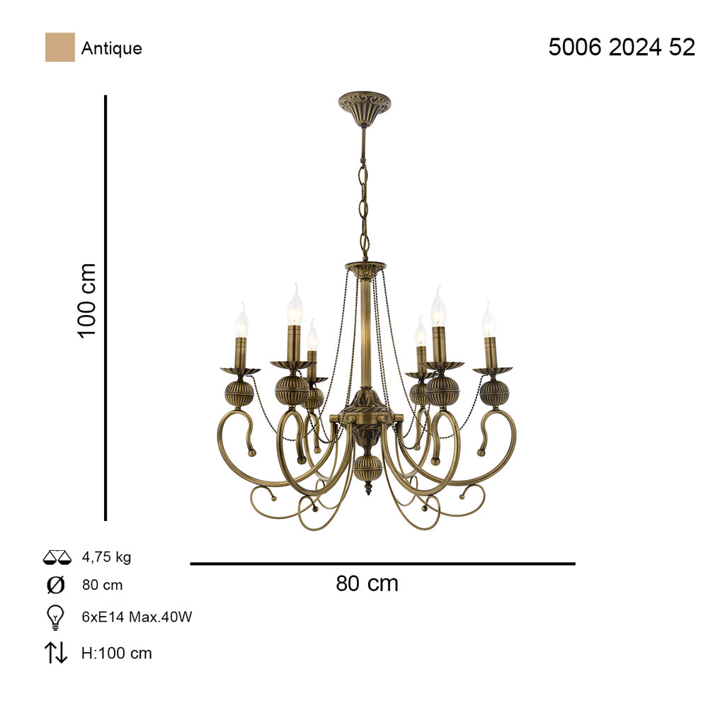 • Lustra HubRom, KASGAR 5006-2024-52 80x80xHmax100 cm 6xE14-40W Antiq