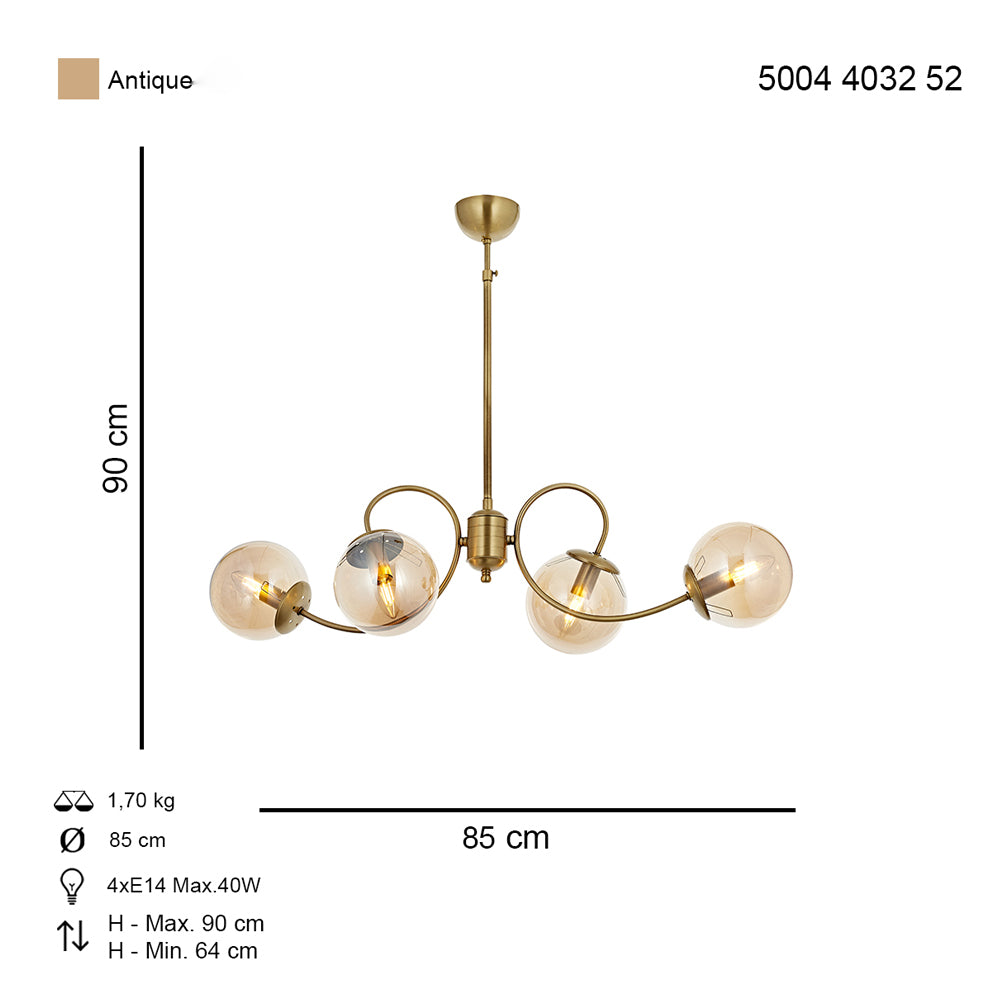 Lustra HubRom, MARAL 5004-4032-52 85x85xHmax90 cm 4xE14-40W Antiq