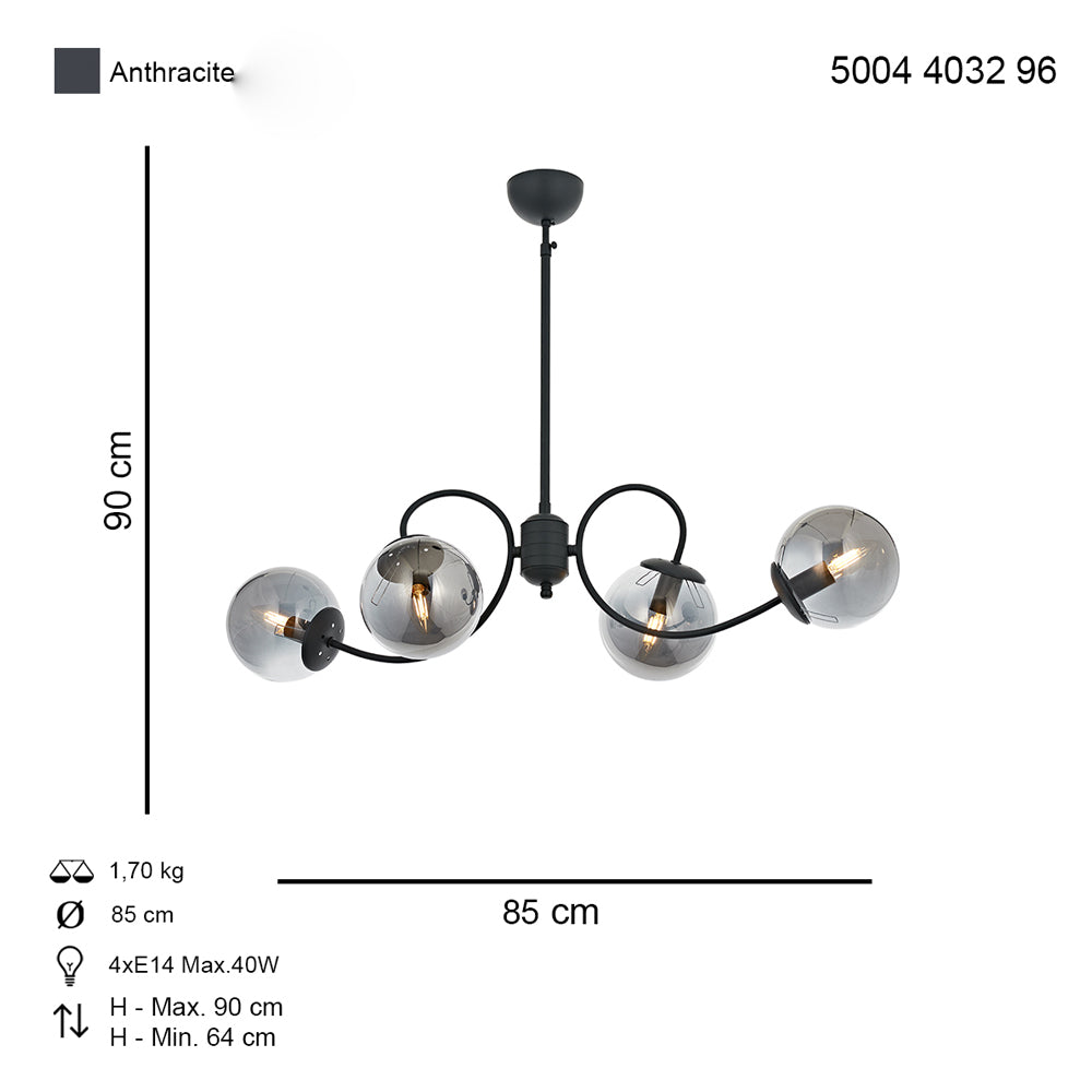 Lustra HubRom, MARAL 5004-4032-96 85x85xHmax90 cm 4xE14-40W Antracit