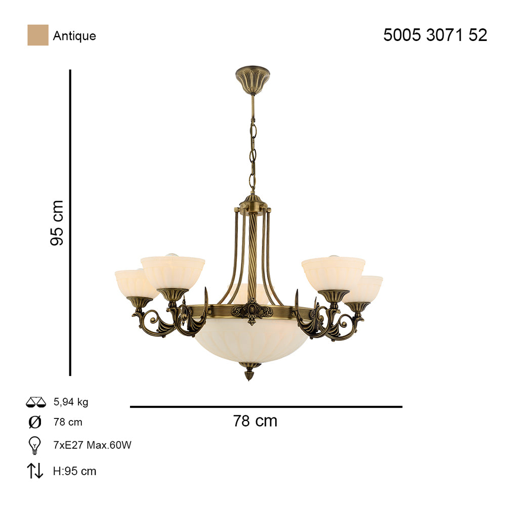 • Lustra HubRom, MASS 5005-3071-52 78x78xHmax95 cm 5xE27-60W + 3xE14-40W Antiq