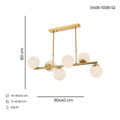 Lustra HubRom, MILAN 5406-1038-52 90x40xHmax-45-80 cm 6xE27-60WAntiq