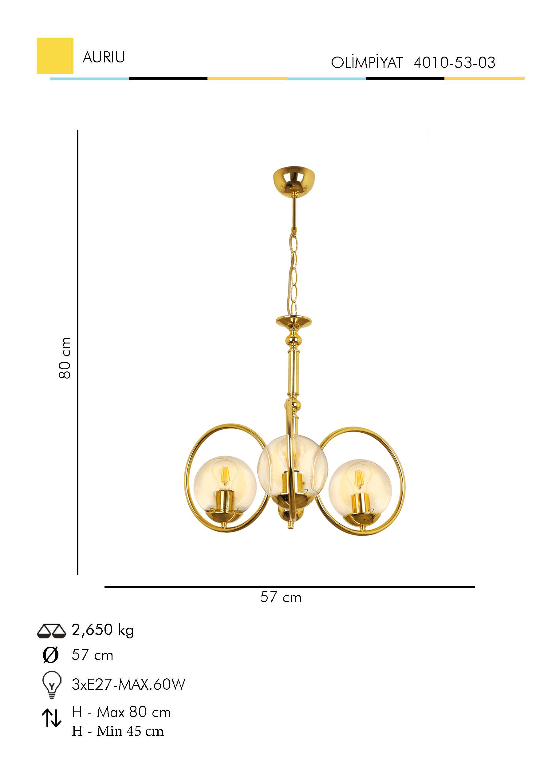 Lustra HubRom, OLIMPIYAT 4010-53-03 57x57xHmax80 cm 3xE27-60W Auriu