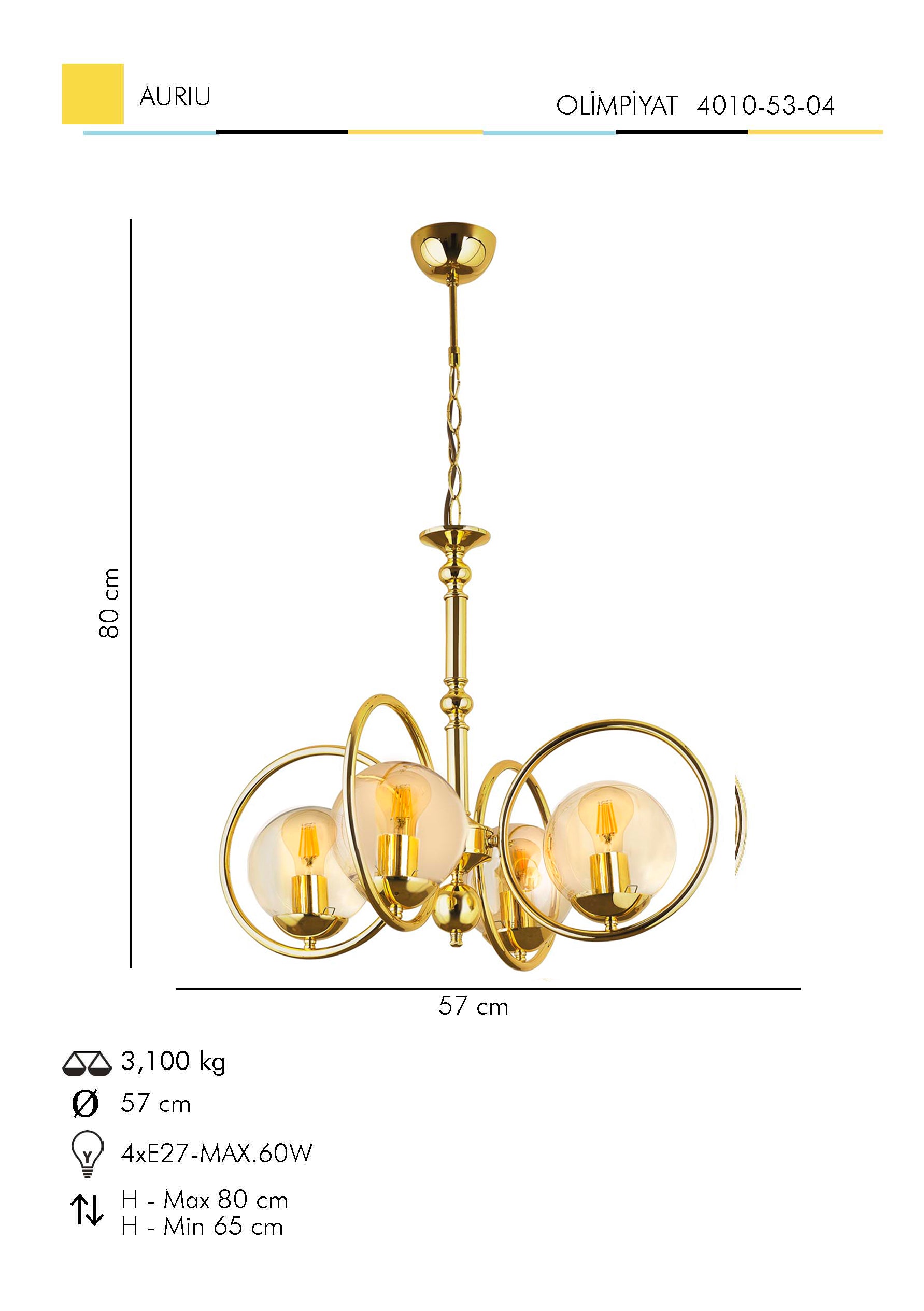 Lustra HubRom, OLIMPIYAT 4010-53-04 57x57xHmax80 cm 4xE27-60W Auriu