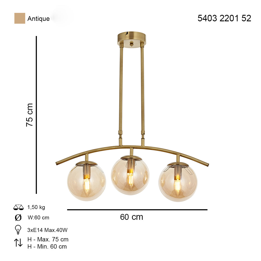 Lustra HubRom, OZEN 5403-2201-52 60x60xHmax75 cm 3xE14-40W Antiq
