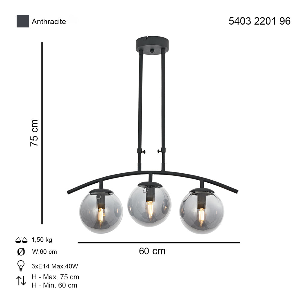 Lustra HubRom, OZEN 5403-2201-96 60x60xHmax75 cm 3xE14-40W Antracit