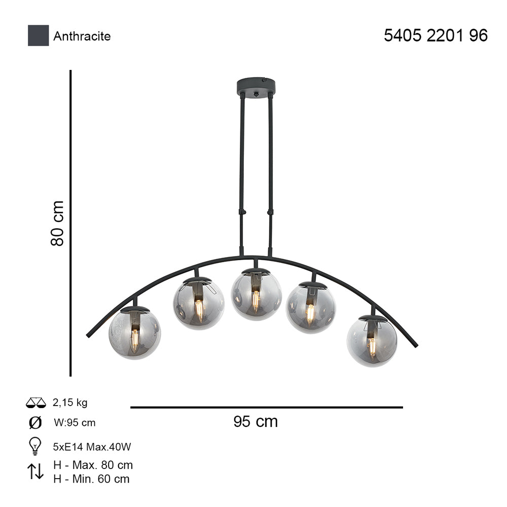 • Lustra HubRom, OZEN 5405-2201-96 95x95xHmax80 cm 5xE14-40W Antracit