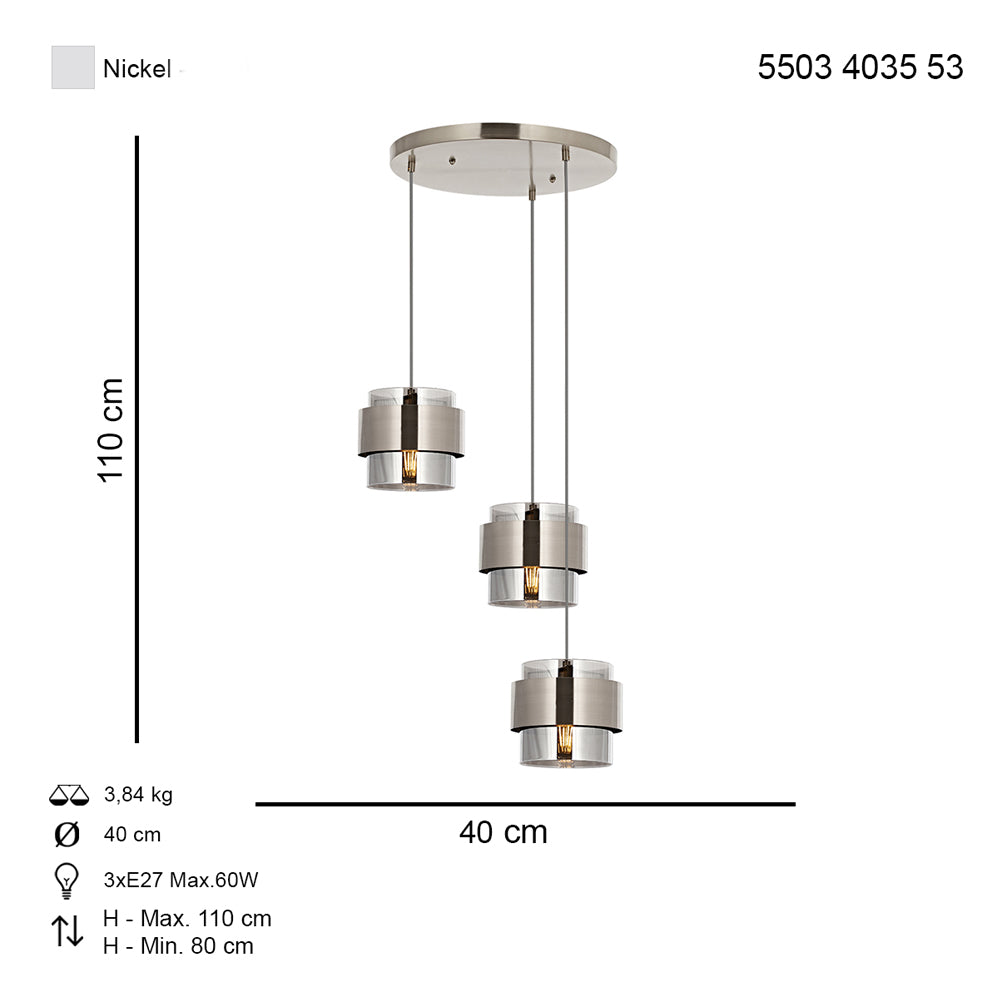 Lustra HubRom, ROZA 5503-4035-53 40x40xHmax110 cm 3xE27-60W Crom Satinat