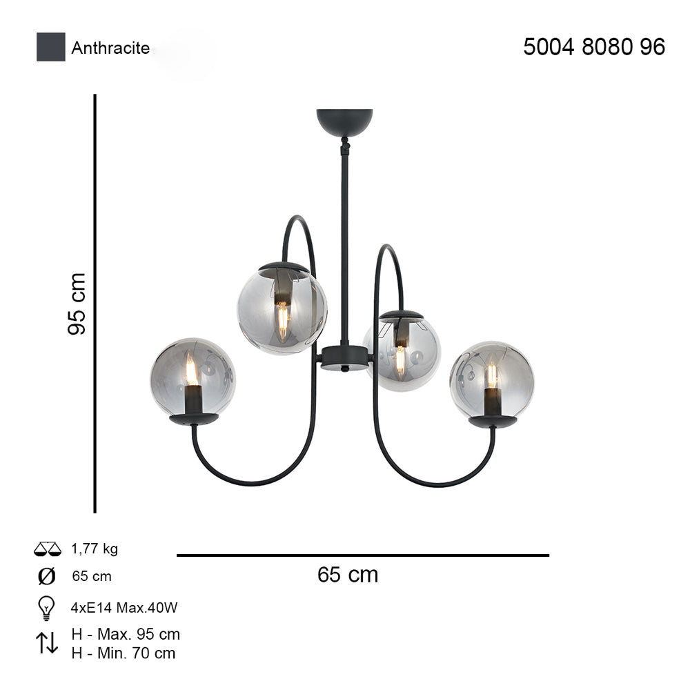Lustra HubRom, SINIR 5004-8080-96 65x65xHmax95 cm 4xE14-40W Antracit