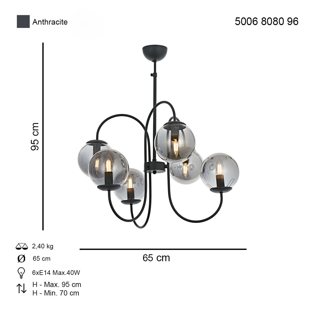 Lustra HubRom, SINIR 5006-8080-96 65x65xHmax95 cm 6xE14-40W Antracit