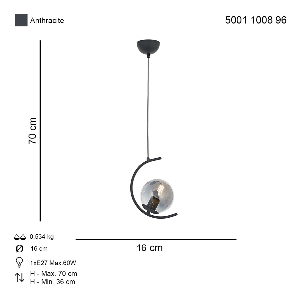 Lustra HubRom, ZAFRA 5001-1008-96 20x16xHmax70 cm 1xE27-60W Antracit