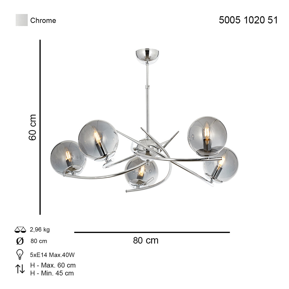 Lustra HubRom, ZULAY 5005-1020-51 80x80xHmax60 cm 5xE27-60W Crom
