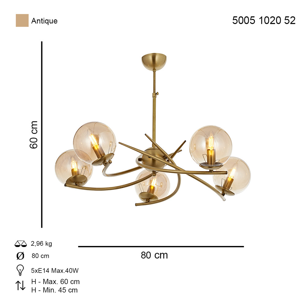Lustra HubRom, ZULAY 5005-1020-52 80x80xHmax60 cm 5xE27-60W Antiq