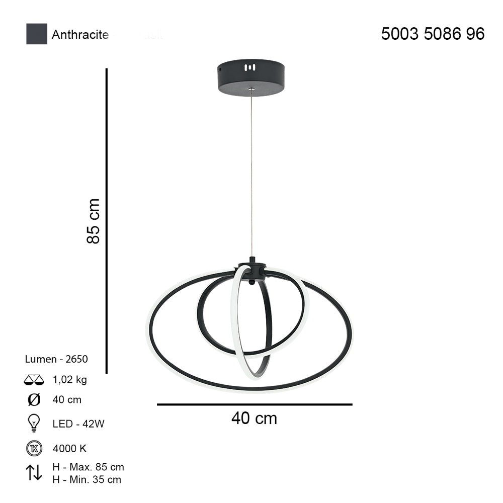 Lustra Led HubRom, VARNA Antarcit 5003-5086-96 40x40xHmax35-85 cm 42 W / 4000 K Lumina Calda,Rece,Neutra
