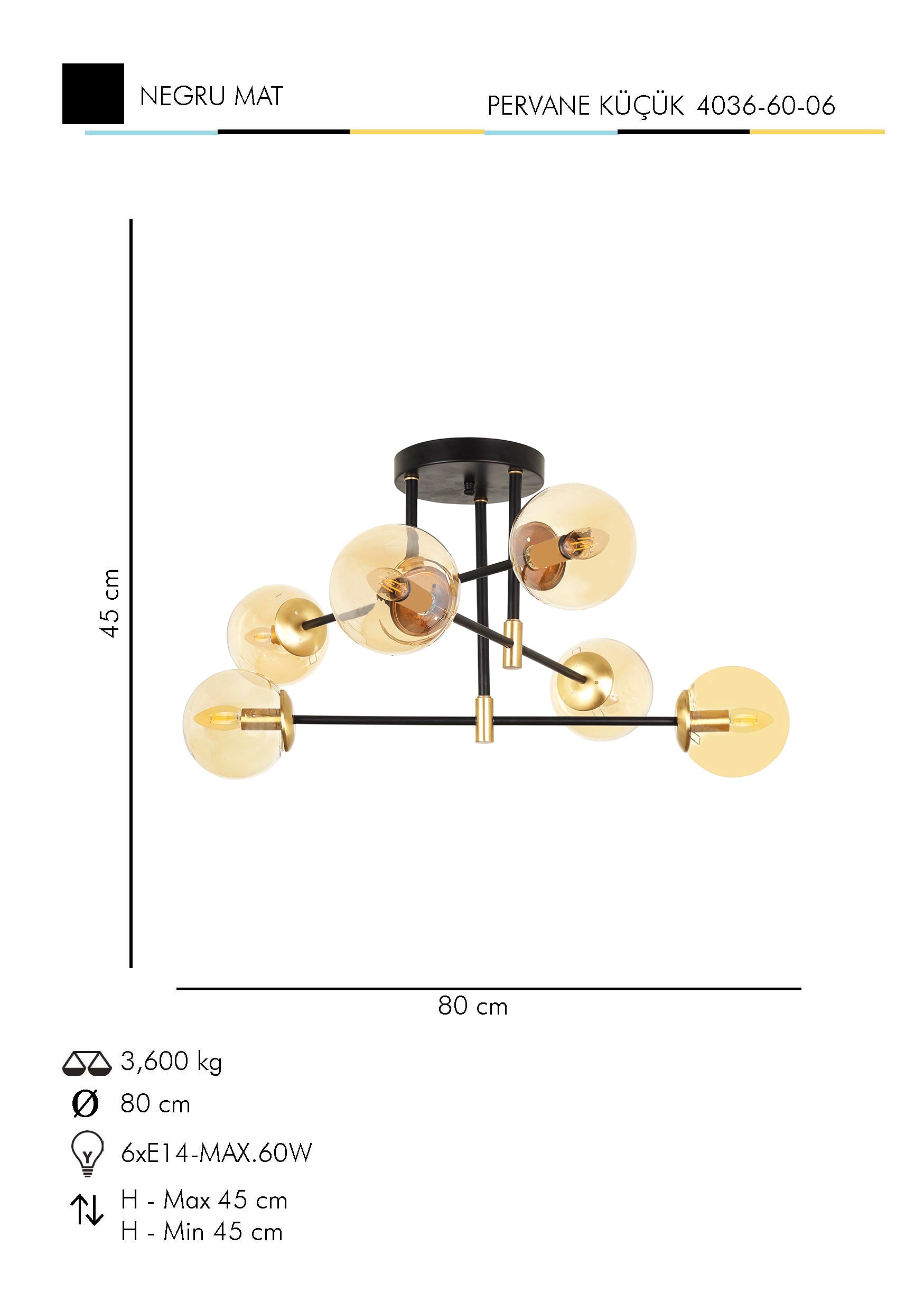 Lustra HubRom, PERVANE MICA 4036-60-06 45x45-80 cm 6xE14-60W Negru / Antiq