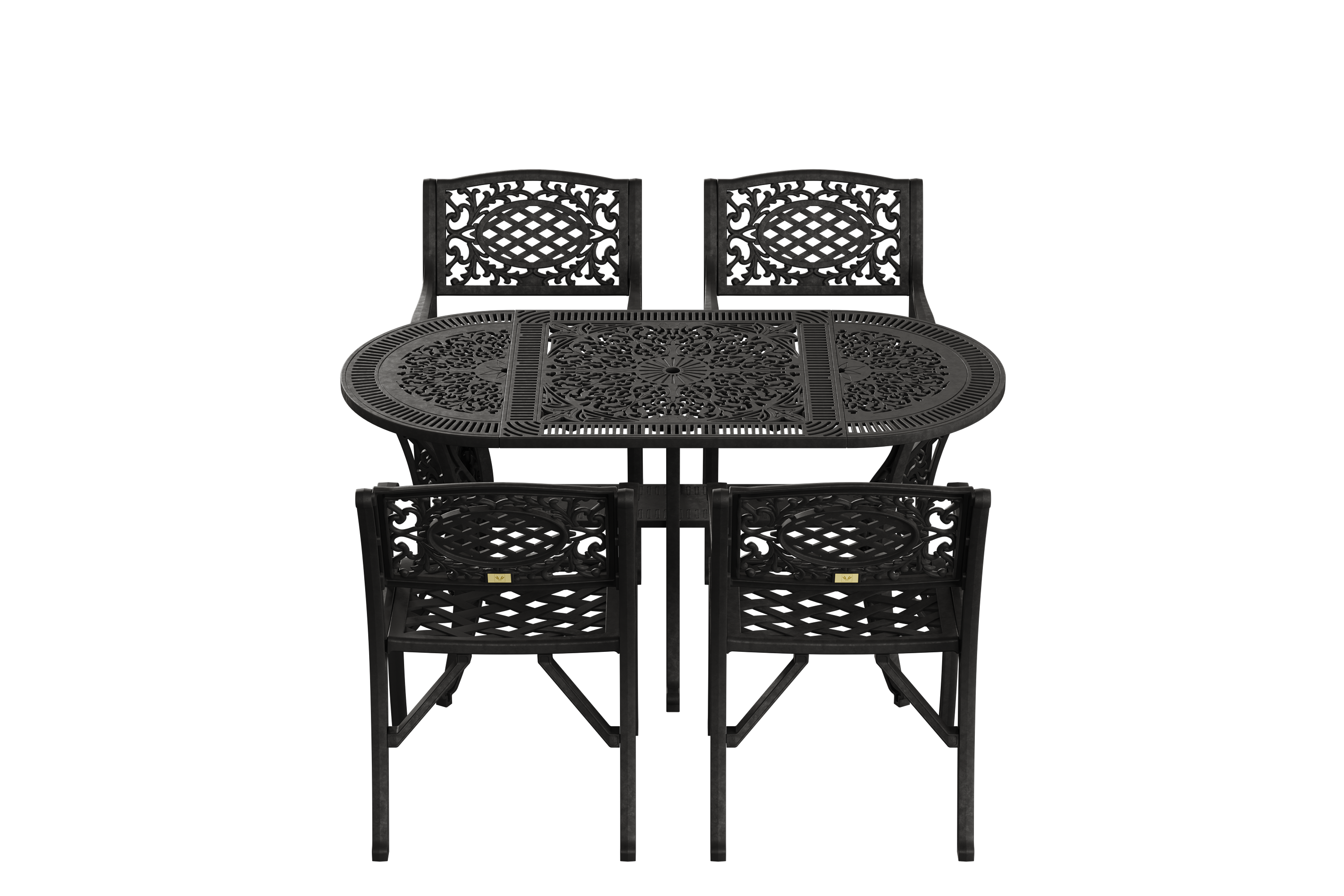 Set Mobilier Gradina HubRom, 1xMasa Ovala(75x150x72), 4xScaun CUNDA(43x42x50x91) Negru