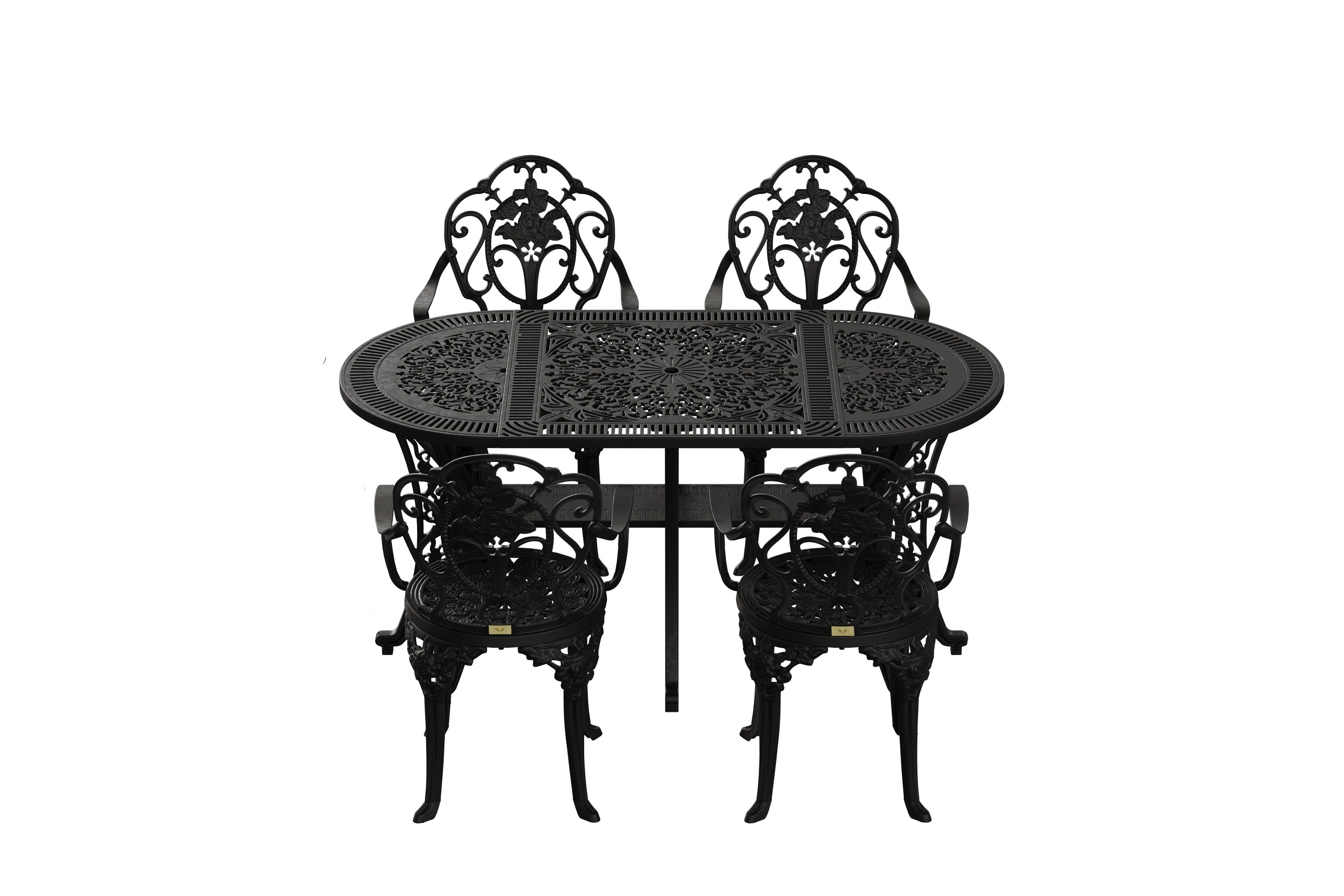 Set Mobilier Gradina HubRom, 1xMasa Ovala(75x150x72), 4xScaun ISPARTA(43x42x50x92) Negru