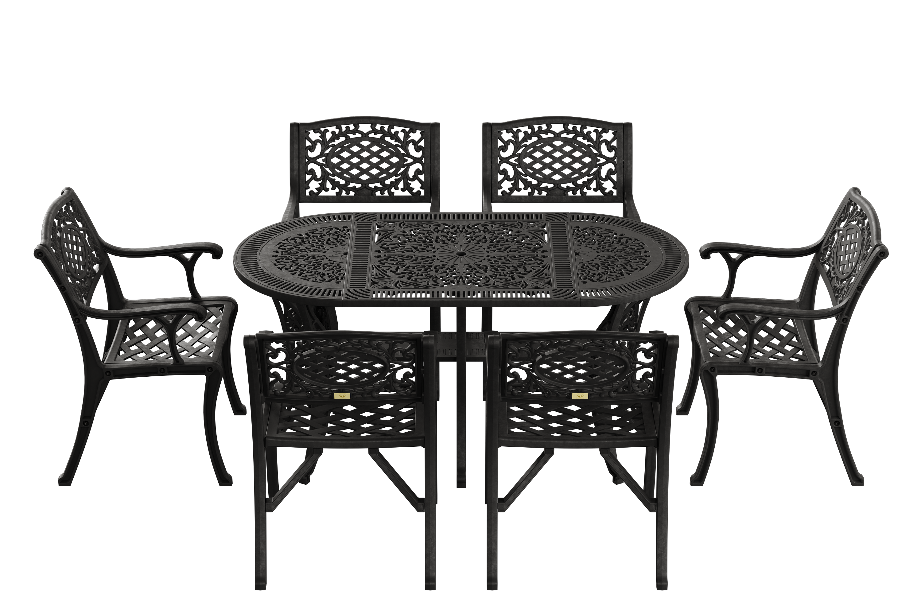 Set Mobilier Gradina HubRom, 1xMasa Ovala(75x150x72), 6xScaun CUNDA(43x42x50x91) Negru