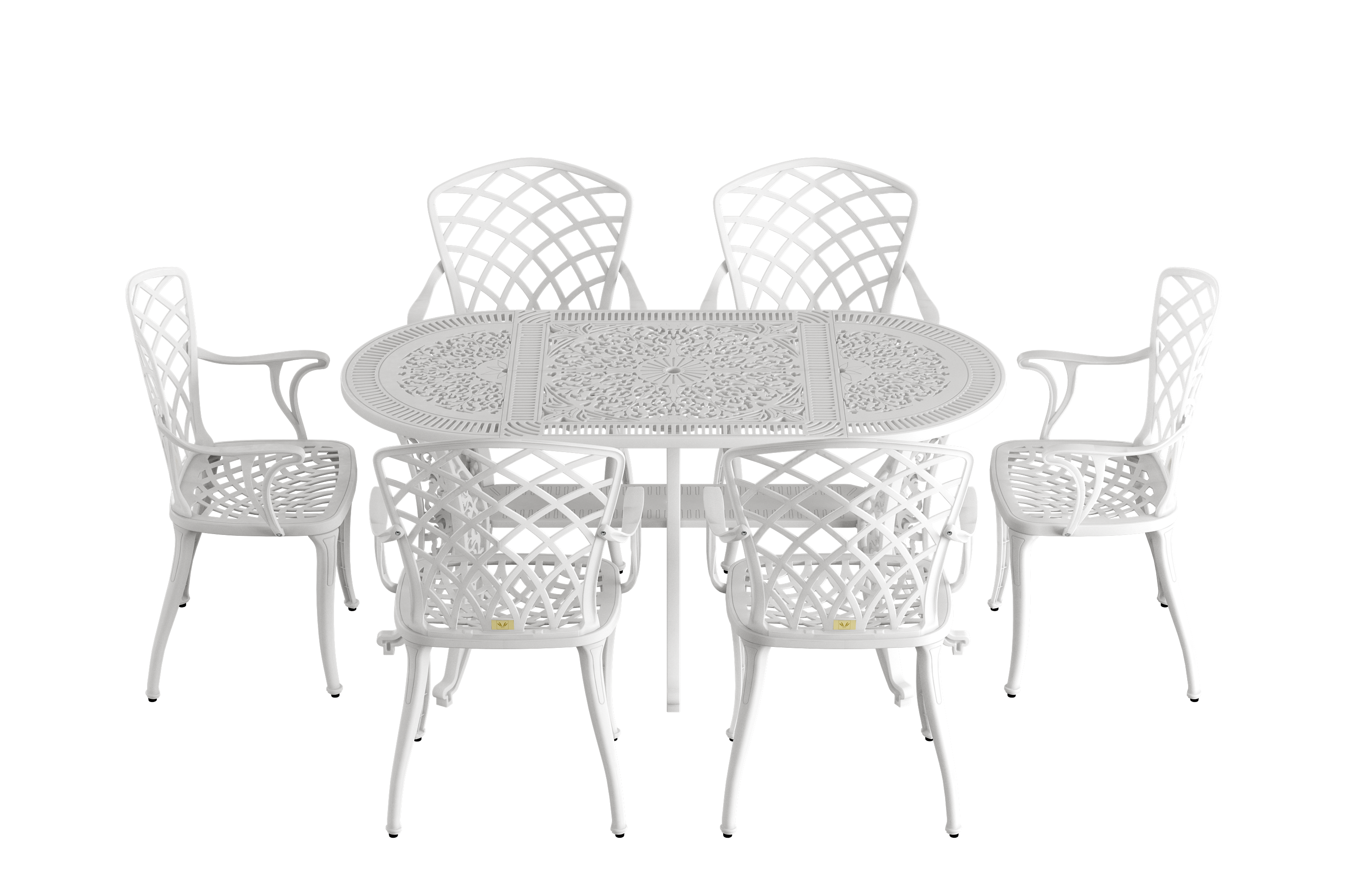 Set Mobilier Gradina HubRom, 1xMasa Ovala(75x150x72), 6xScaun HITIT(43x42x50x92) Alb