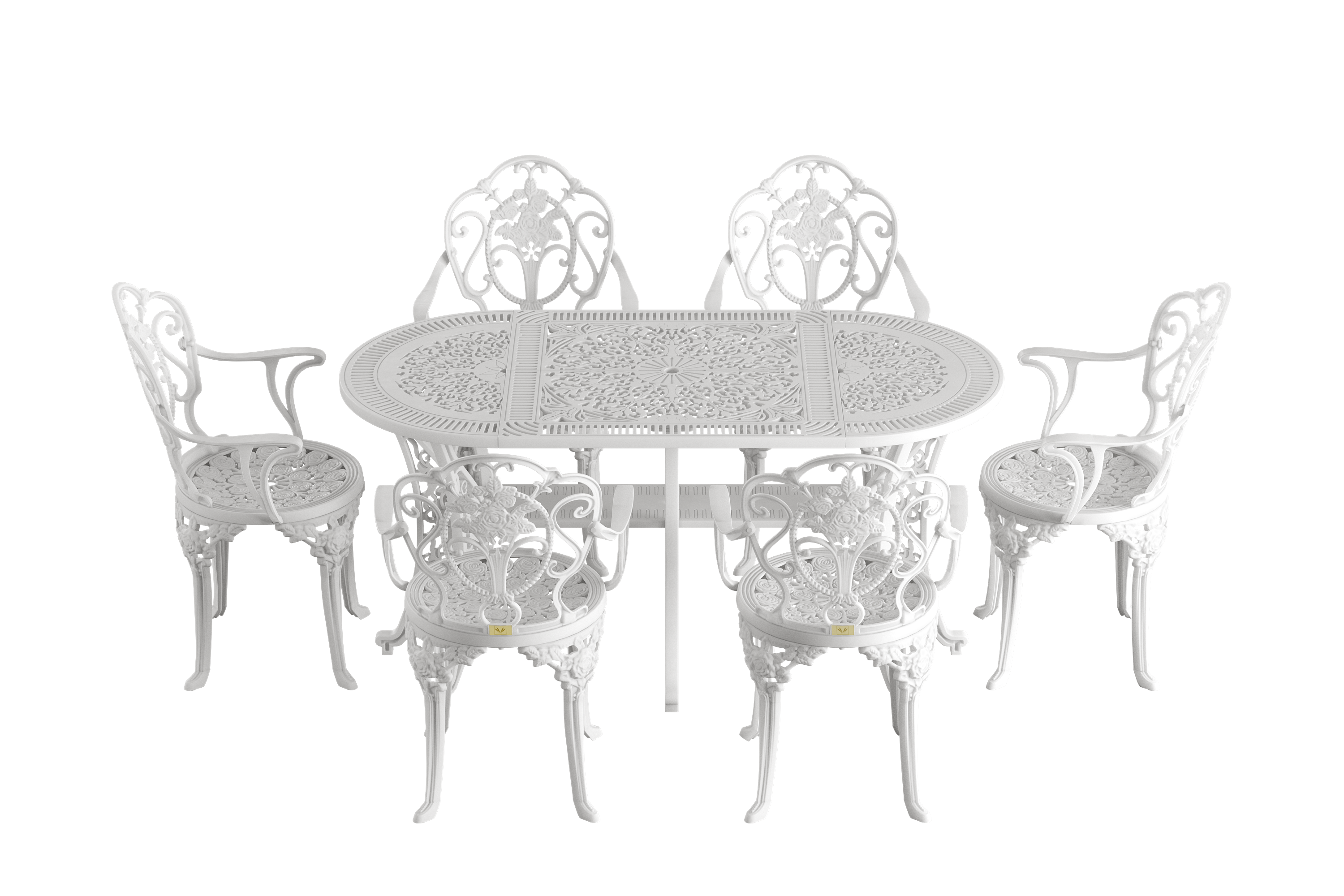Set Mobilier Gradina HubRom, 1xMasa Ovala(75x150x72), 6xScaun ISPARTA(43x42x50x92) Alb