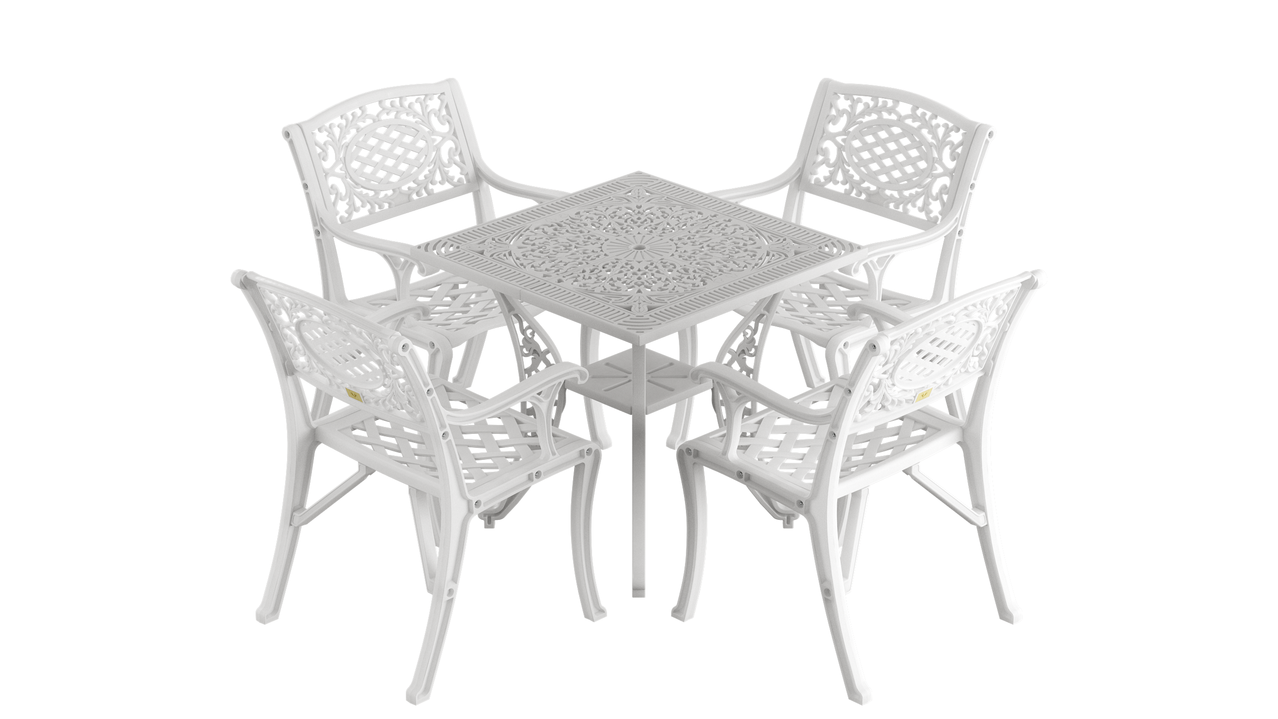 Set Mobilier Gradina HubRom, 1xMasa Patrata(75x75x72), 4xScaun CUNDA(43x42x50x91) Alb