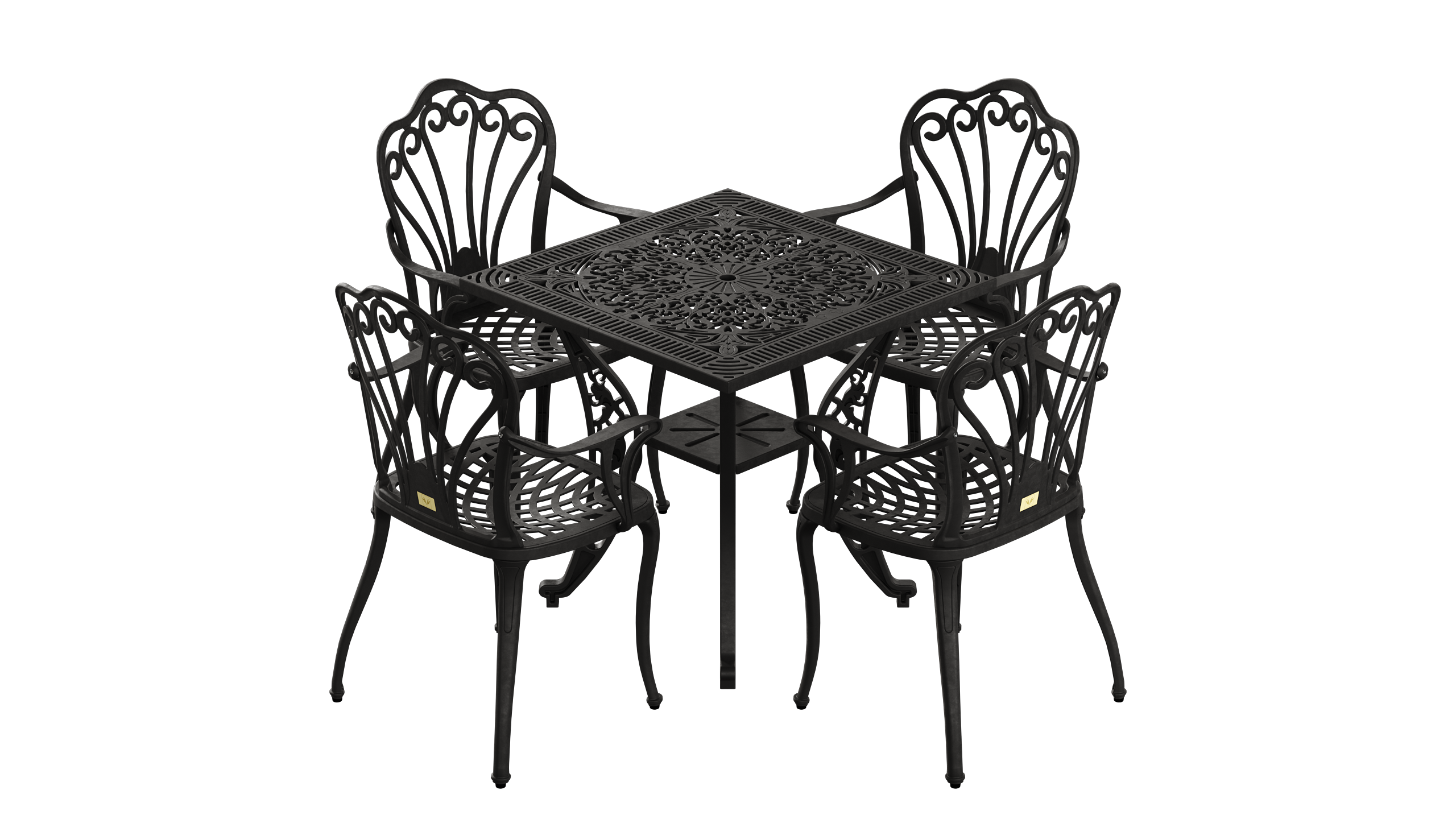 Set Mobilier Gradina HubRom, 1xMasa Patrata(75x75x72), 4xScaun ISTANBUL(43x42x50x91) Negru
