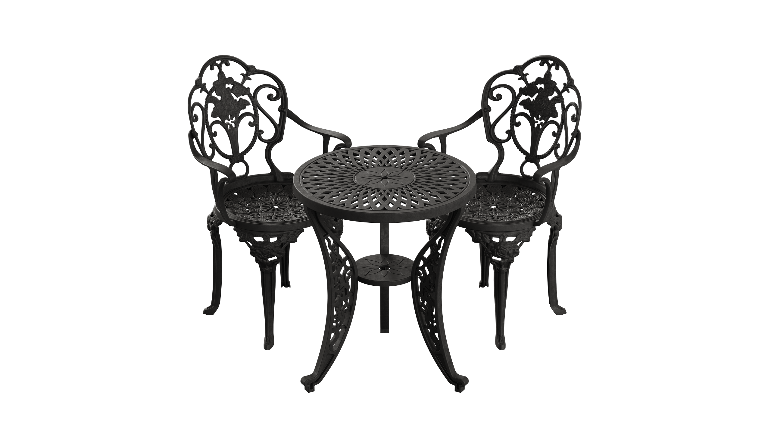 Set Mobilier Gradina HubRom, 1xMasa Rotunda(60x72), 2xScaun ISPARTA(43x42x50x92) Negru