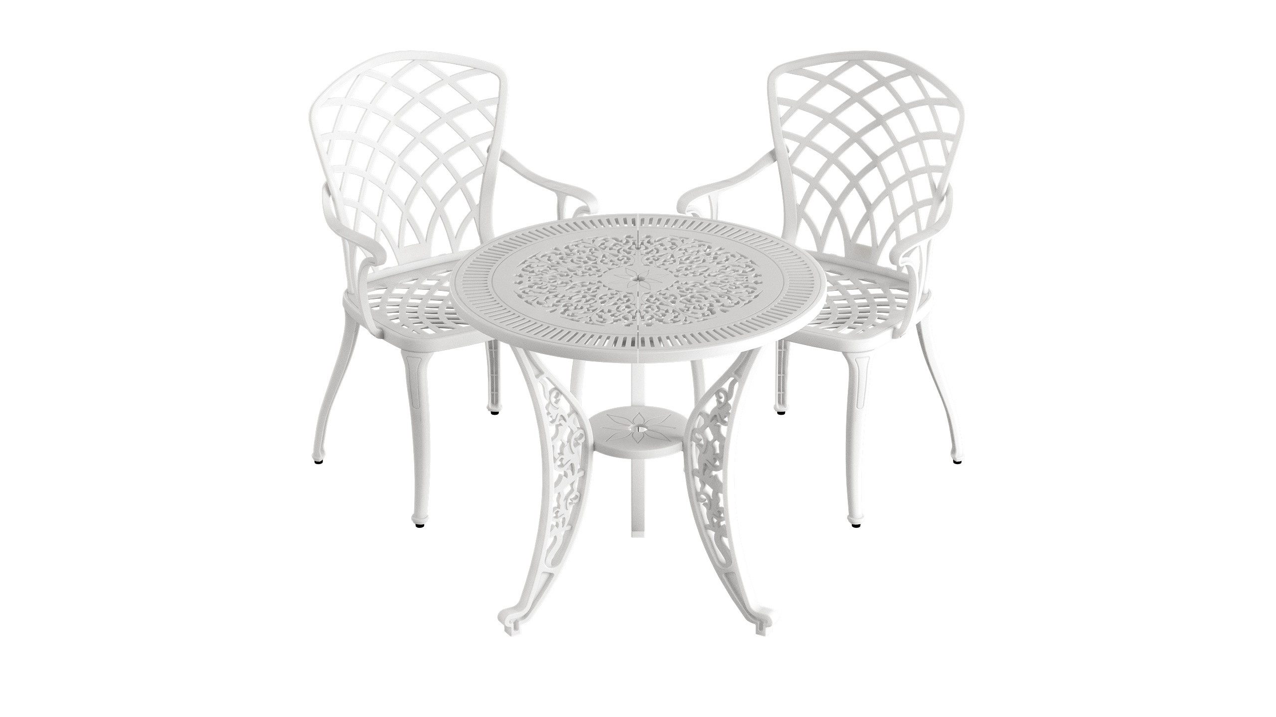 Set Mobilier Gradina HubRom, 1xMasa Rotunda(75x72), 2xScaun HITIT(43x42x50x92) Alb